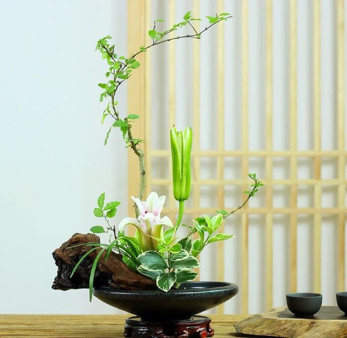 【美しい水盤で生花を引き立てる!】