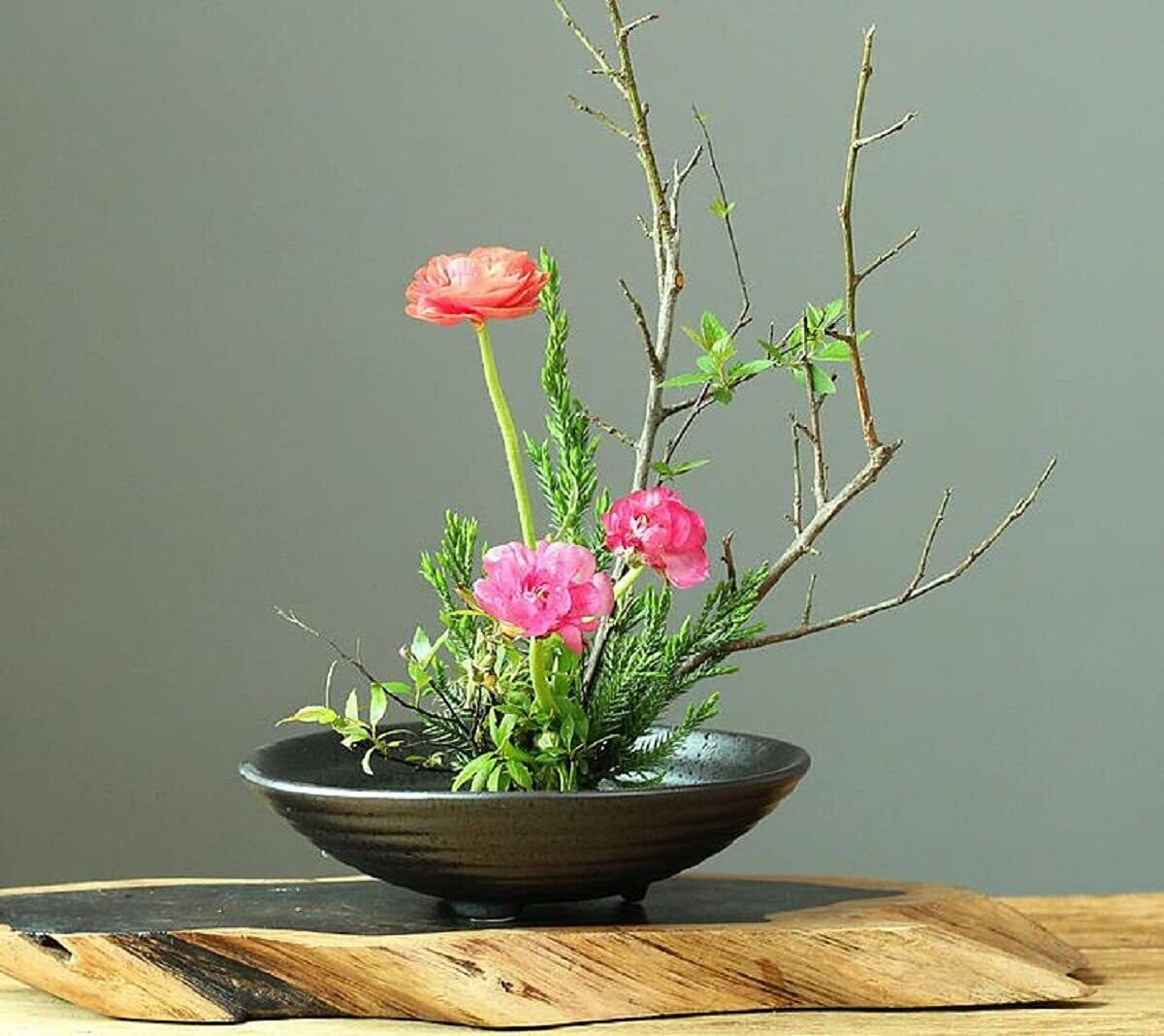 華道で使われる水盤として浅型の花器は、盆栽や盛り花、水生植物等の幅広いフラワーアレンジメントにご使用いただけます。
