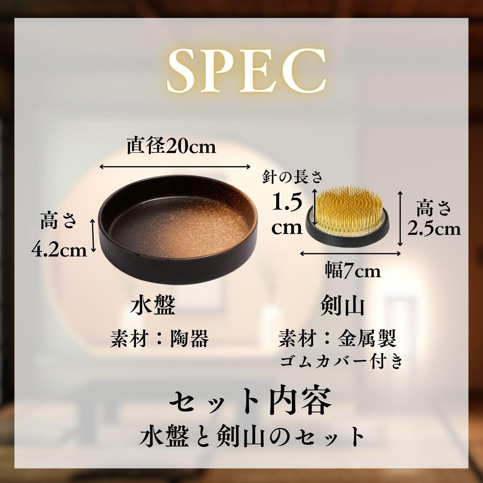 【生け花・華道にぴったりの基本セット】 セット内容は、直径20cmの陶器製水盤1点と、直径7cmの丸剣山(ゴムリング付き)1点。初心者の方が最初に揃える道具として理想的で、華道の基本的な稽古にもしっかり対応できます。飾る花の種類や本数を選ばず、四季折々の植物を気軽に生けられるサイズ感で、日常のちょっとした癒しの時間にもぴったり。シンプルながら本格的な構成で、使用感も高く、長く愛用できる品質です。初めての一歩を踏み出す方にも、これまで続けてきた方にもおすすめのベーシックセットです。