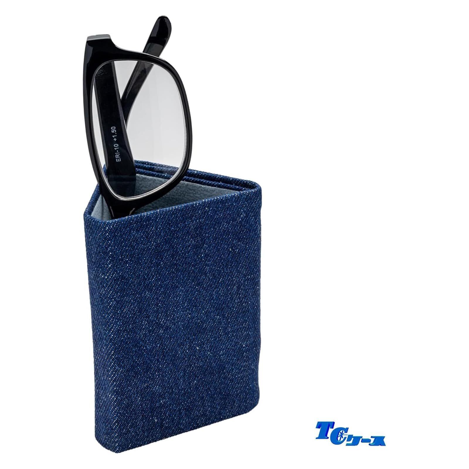 テーシーケース メガネスタンド おしゃれ 折り畳み 眼鏡スタンド ハード ケース ステンレス PU ネイビー 名刺サイズ HY-8198ST-6