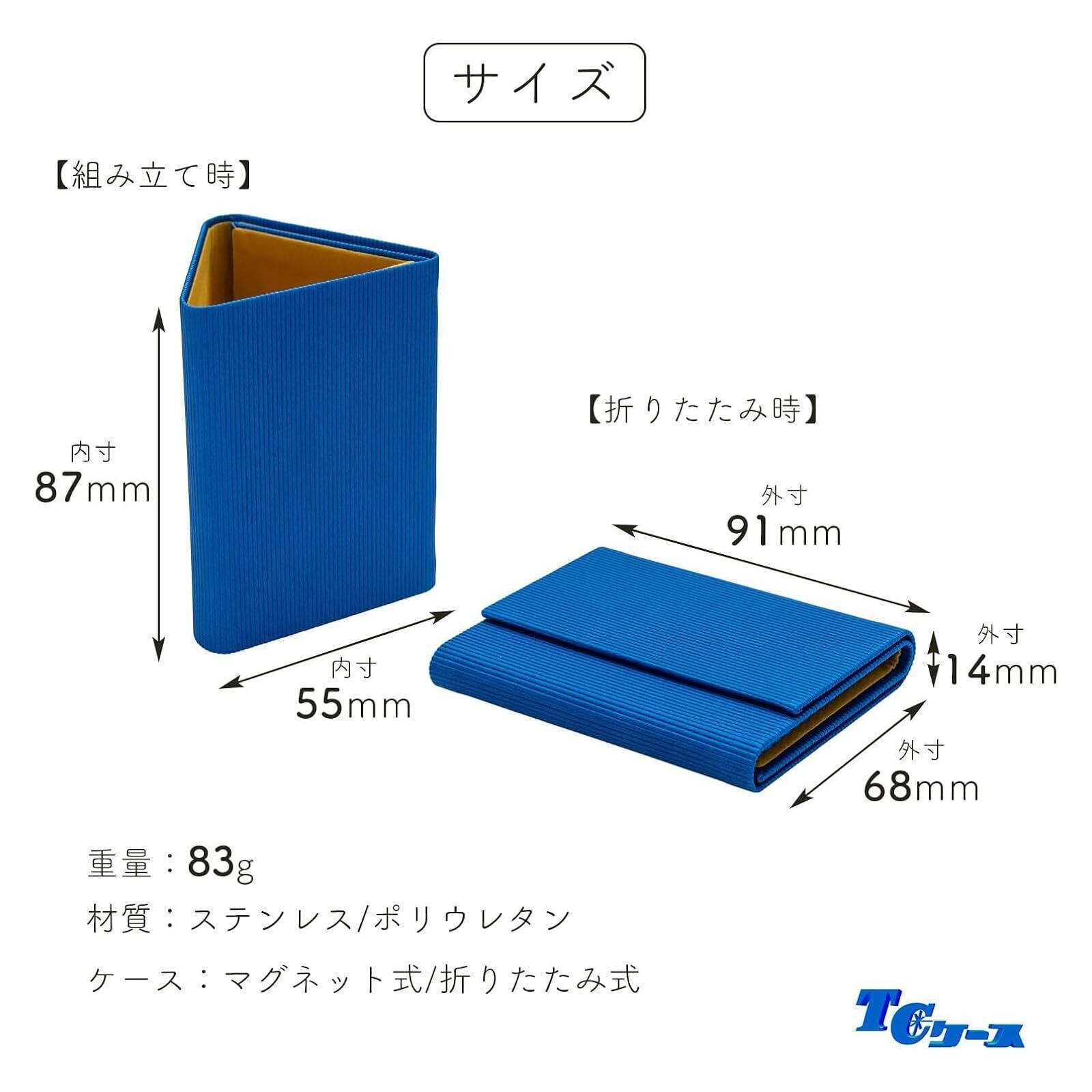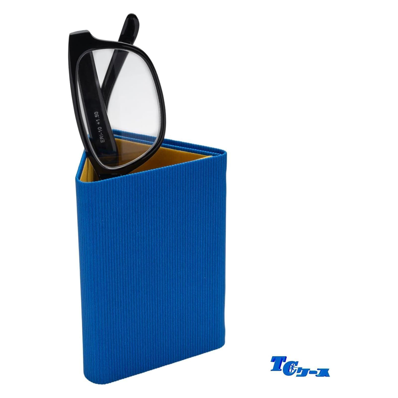 テーシーケース メガネスタンド おしゃれ 折り畳み 眼鏡スタンド ハード ケース ステンレス PU ブルー 名刺サイズ HY-8198ST-12