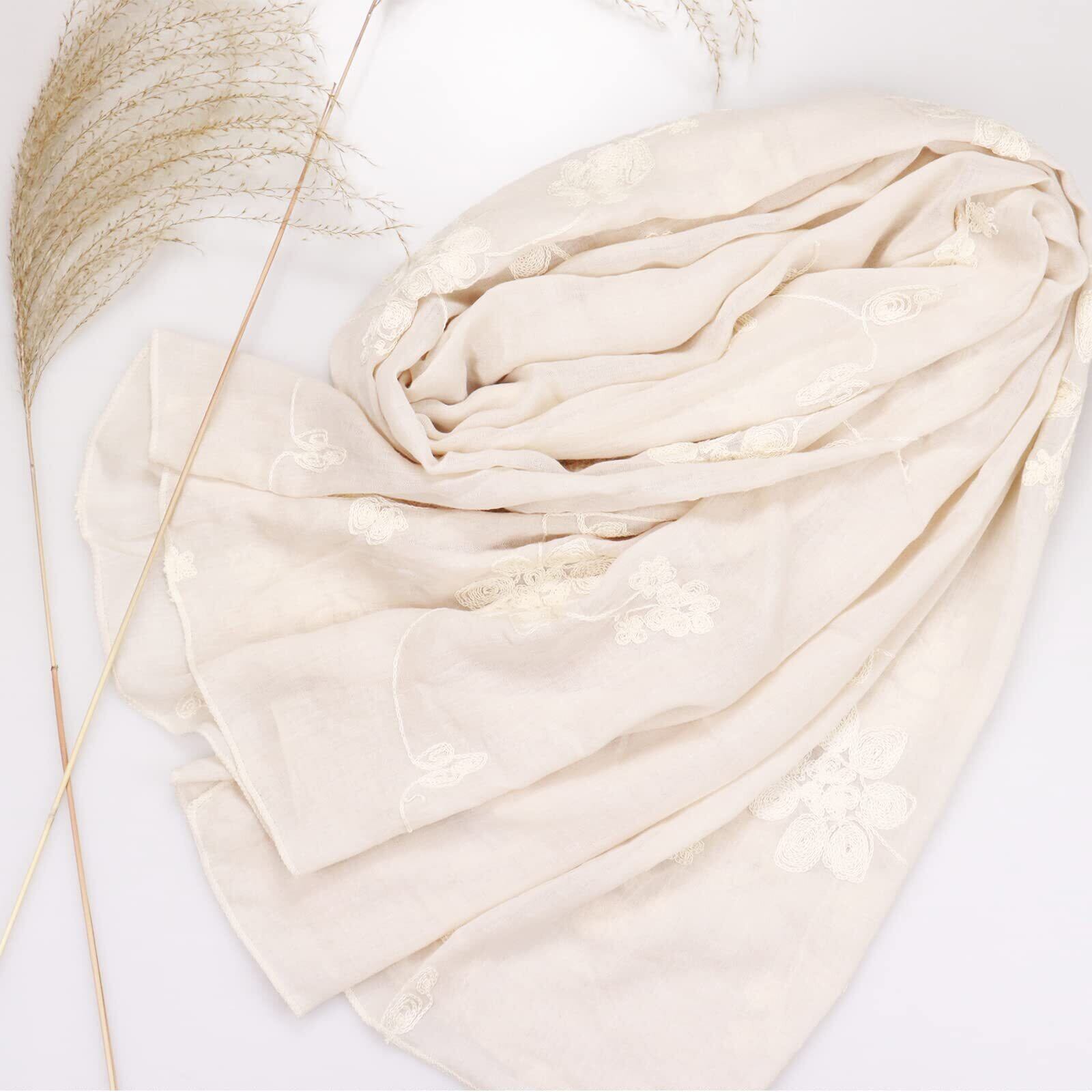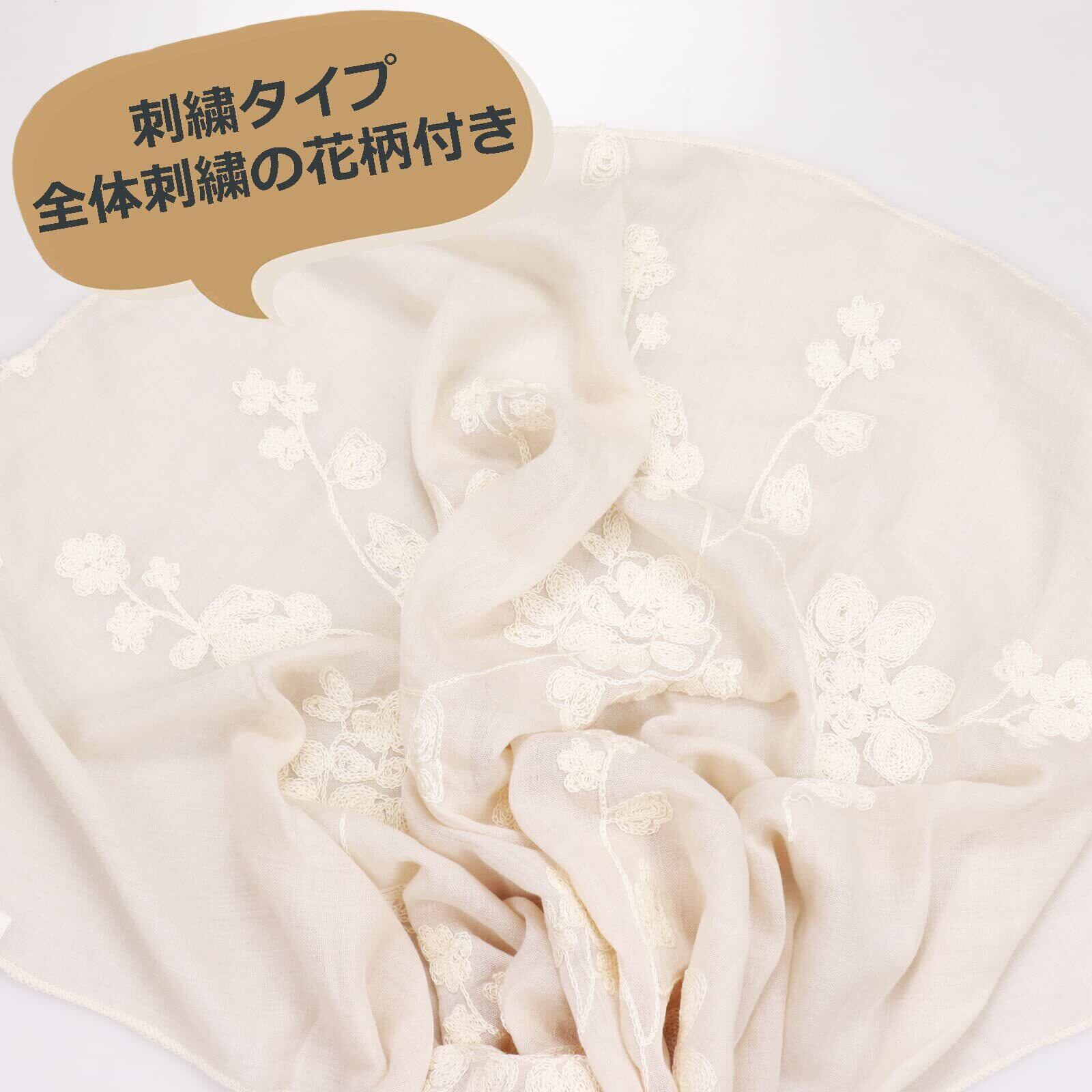 材質:コットンとポリエステル サイズ:幅90cm×縦180cm 重量:0.14kg 色:ベージュ(刺繍花柄)