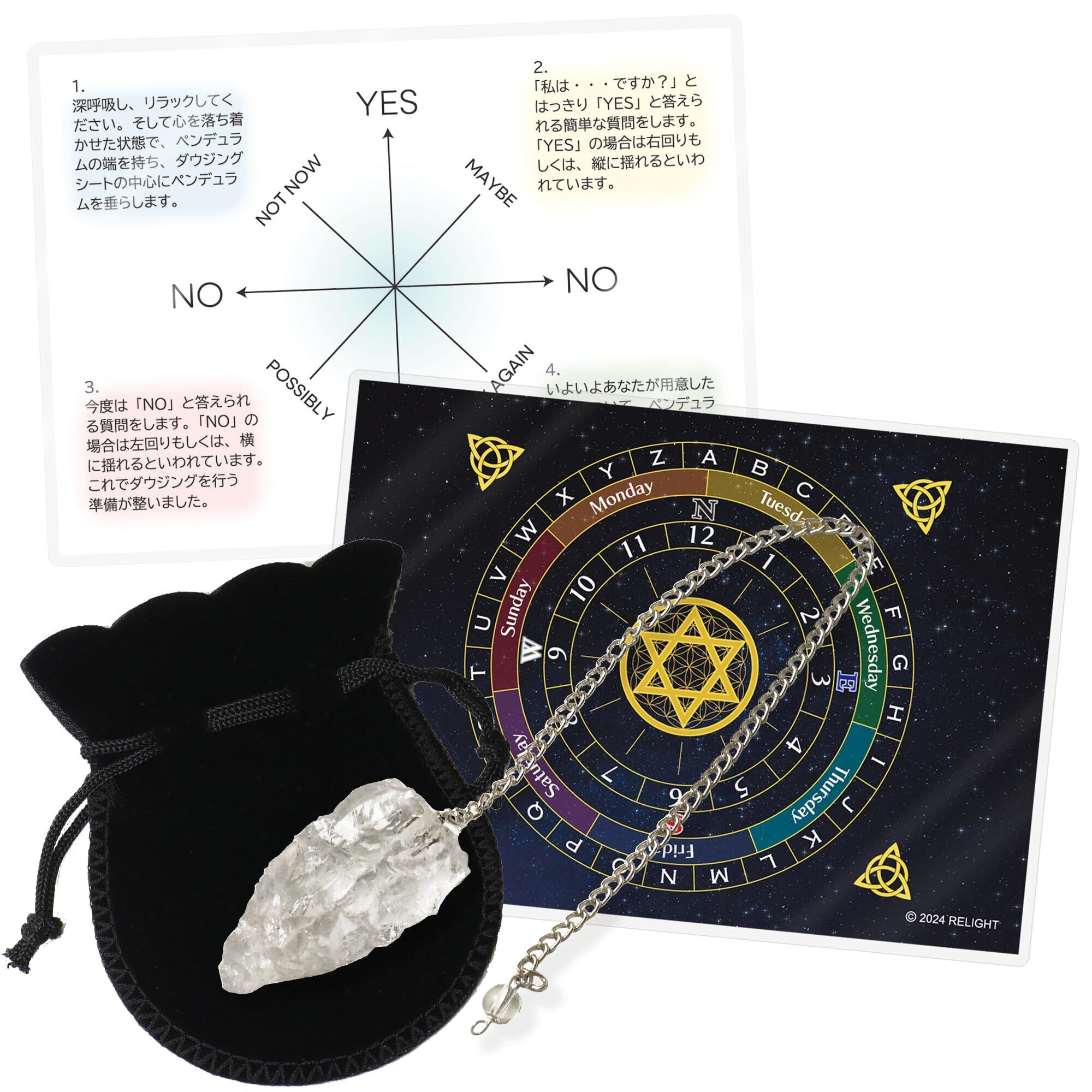 RELIGHT 天然石 水晶 ペンデュラム ダウジング 占い グッズ パワーストーン ヒマラヤ産 風水 ダウジングシート サイズ 3~5cm (水晶, 中)