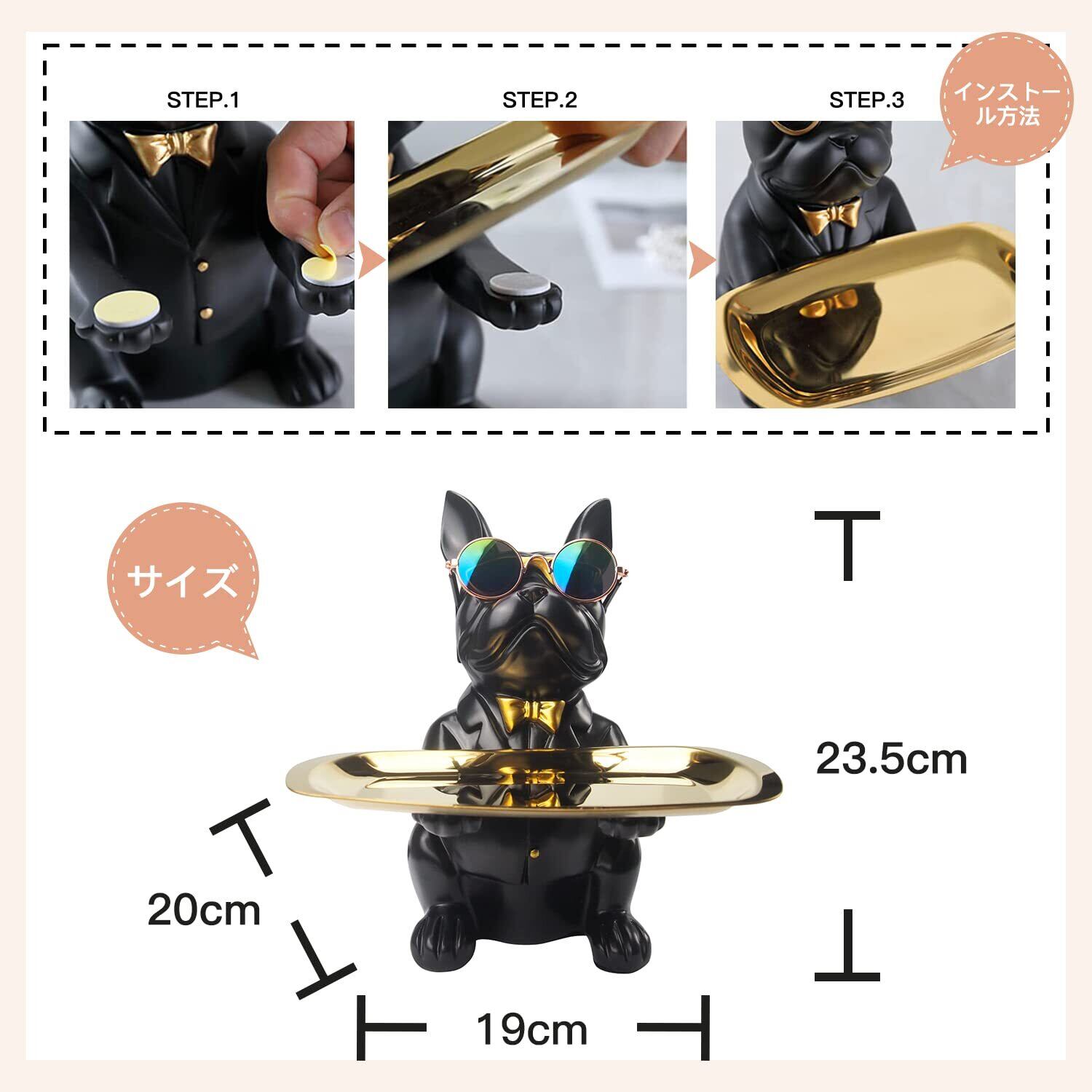 [ 高品質の樹脂素材 ] シンプルなユニークな形状、高輝度と活発な色、繊細な職人の技。手触りが優れて、本物にそっくりで、観賞性が高い皿を捧げる犬さんは、創造的で可愛い装飾用アートワークです。環境にやさしい樹脂とステンレス鋼の光沢あるトレイを使用し、 安全で耐久性が高いです。何年も使用しても新品のようで、ひび割れや変色の心配はありません。■詳細仕様:黒金のプチゴージャス 素材:安全な樹脂+ステンレス鋼トレイ。