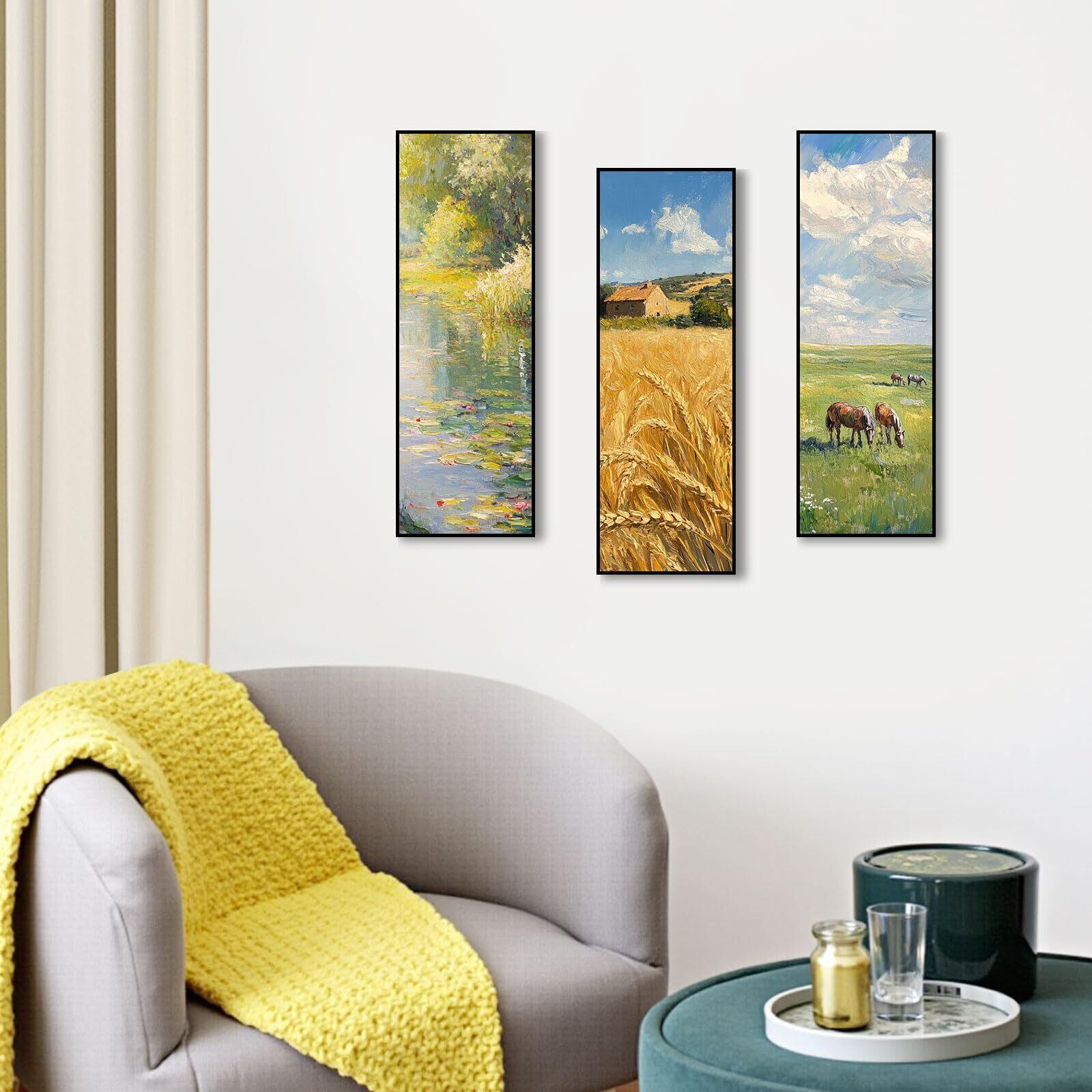 【特殊な長方形形状】横幅 10cm× 高さ 30cm のユニークなサイズ。複数枚を組み合わせてモダンなアートギャラリー風の装飾が可能です。1.5cm の厚手フレームで立体感を演出し、額装不要でそのまま壁に飾れます。