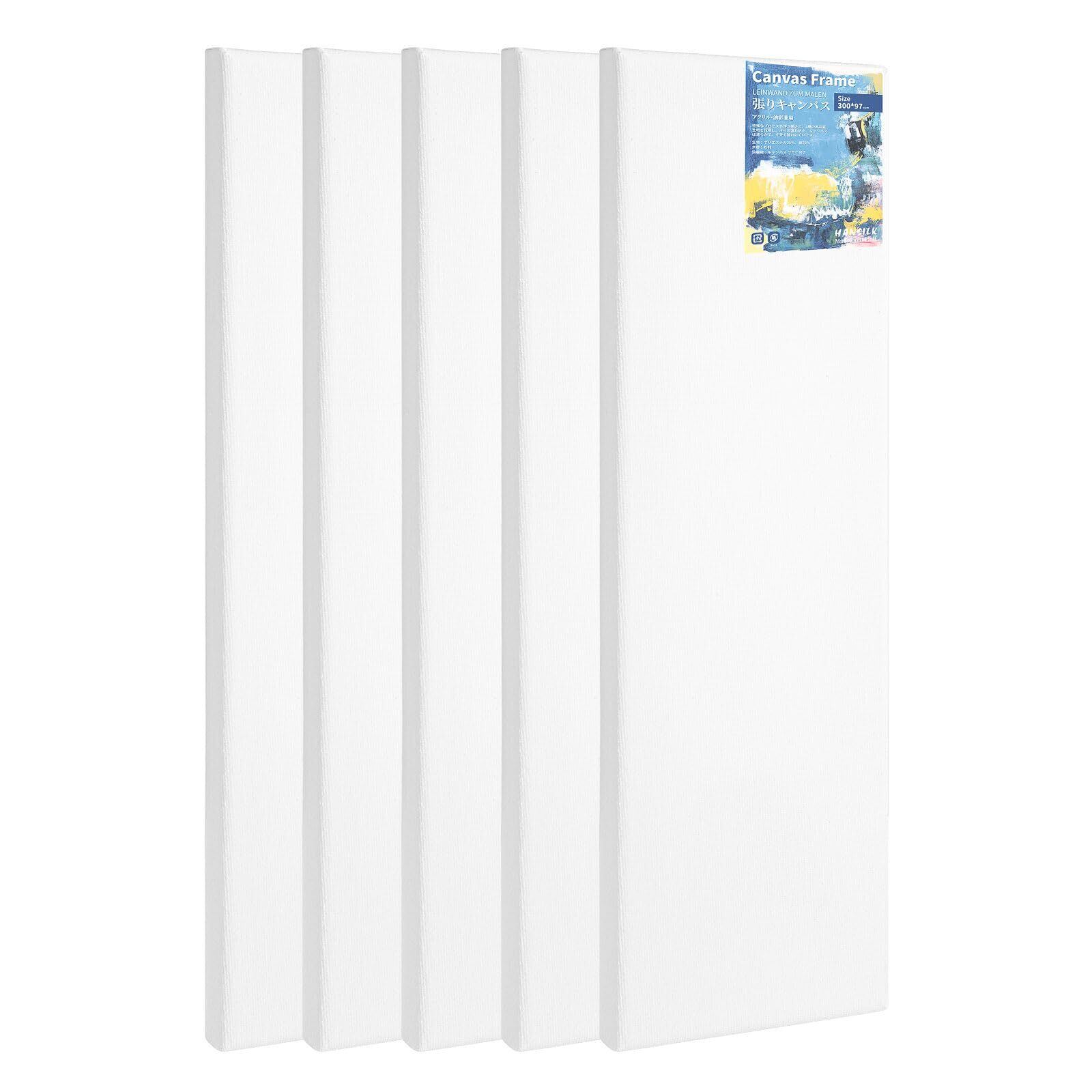 HANSILK キャンバス 化繊綿 張りキャンバス 長方形 100*300MM キャンバス画材 ライト木製フレーム 厚手 パネル 画布 描画 絵画ボード 水彩 油絵 アクリル 5枚/セット