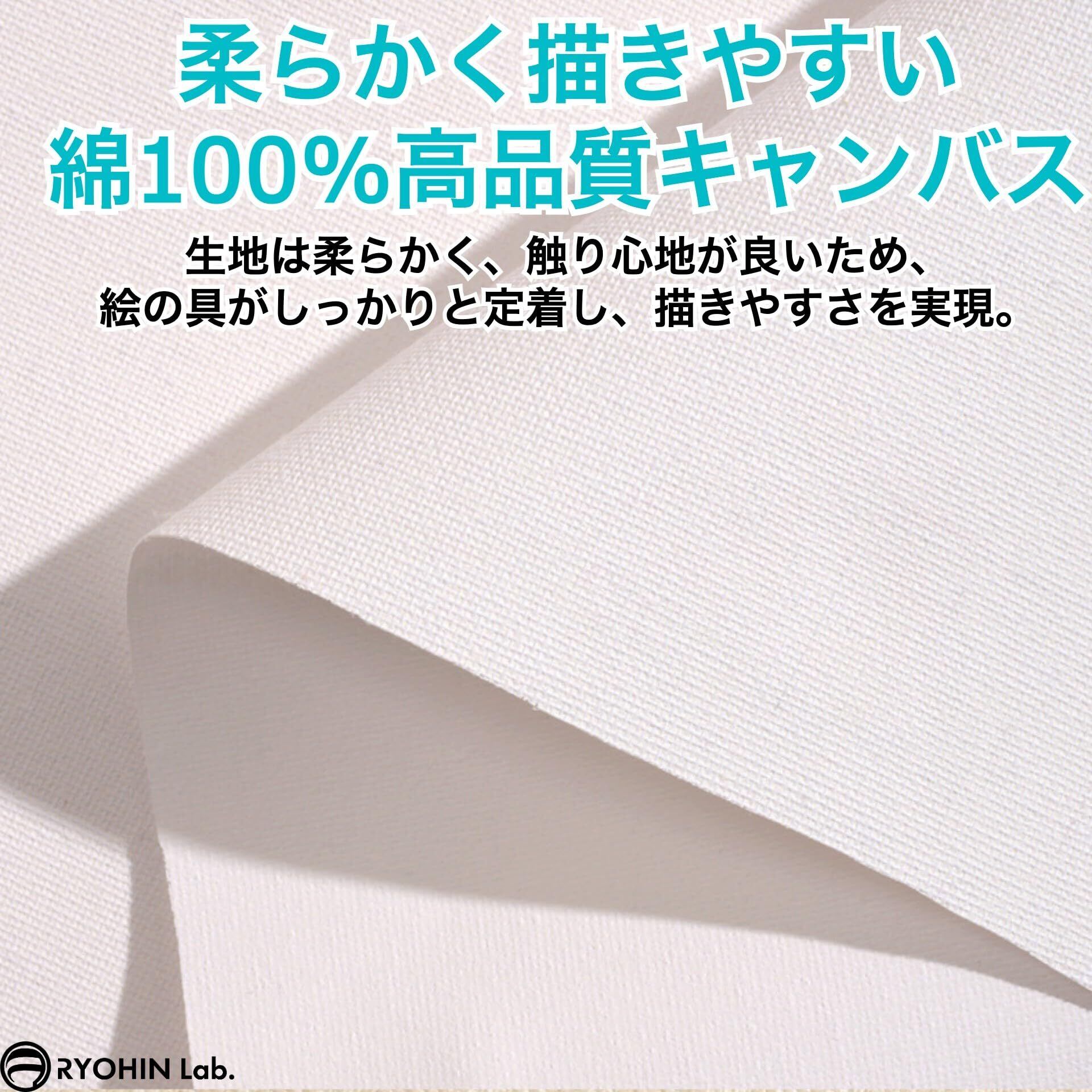 【柔らかく描きやすい高品質キャンバス】綿100%の生地は柔らかく、触り心地が良いため、絵の具がしっかりと定着し、描きやすさを実現。鉛筆デッサンや水彩、油絵具など、幅広い画材に対応しています。