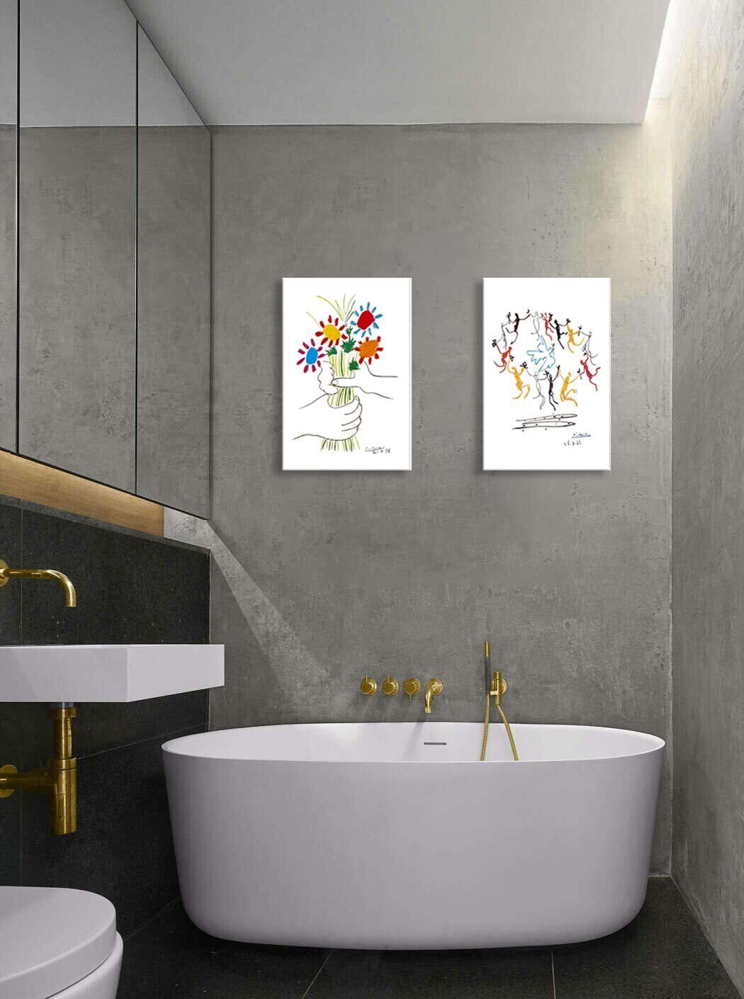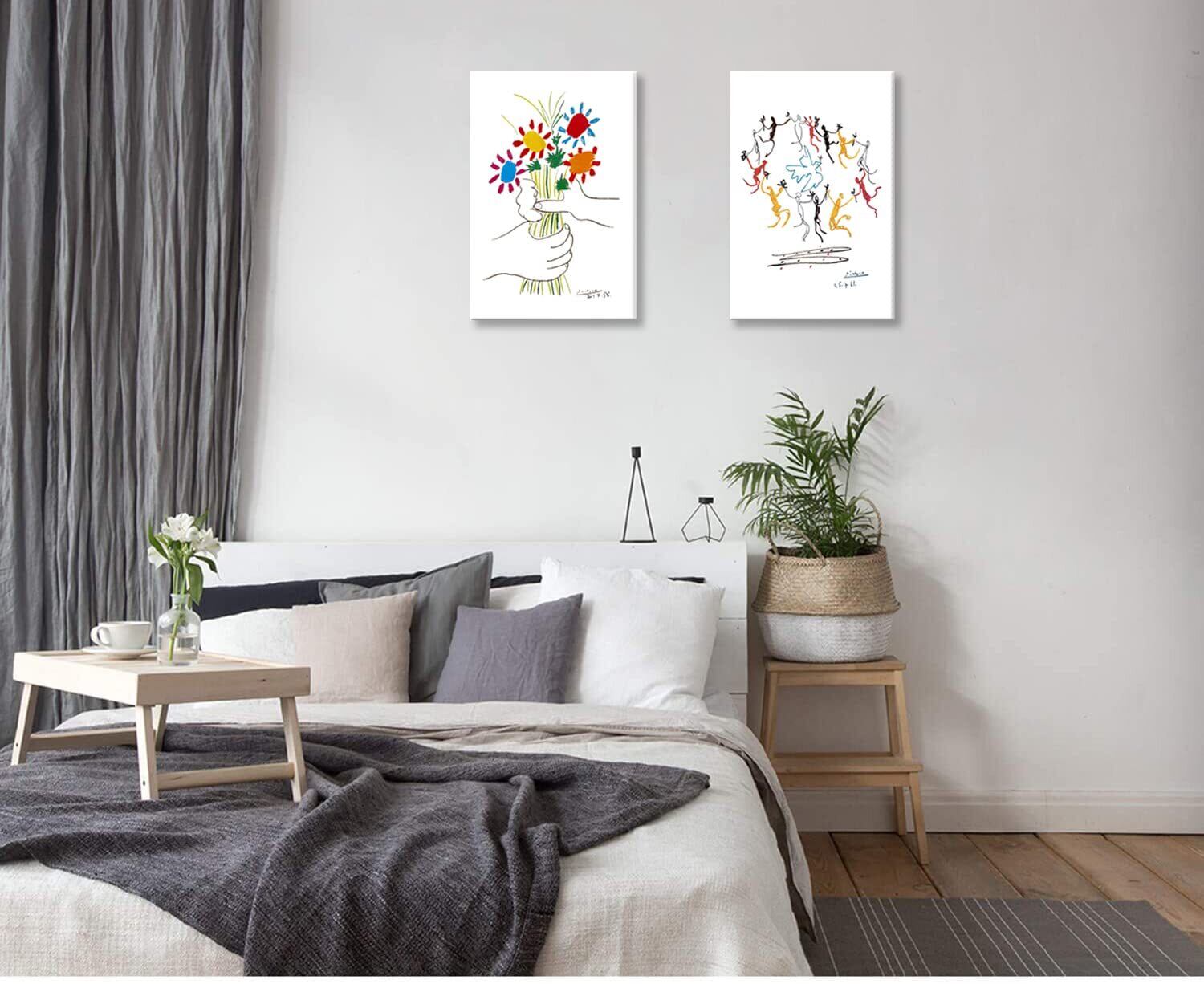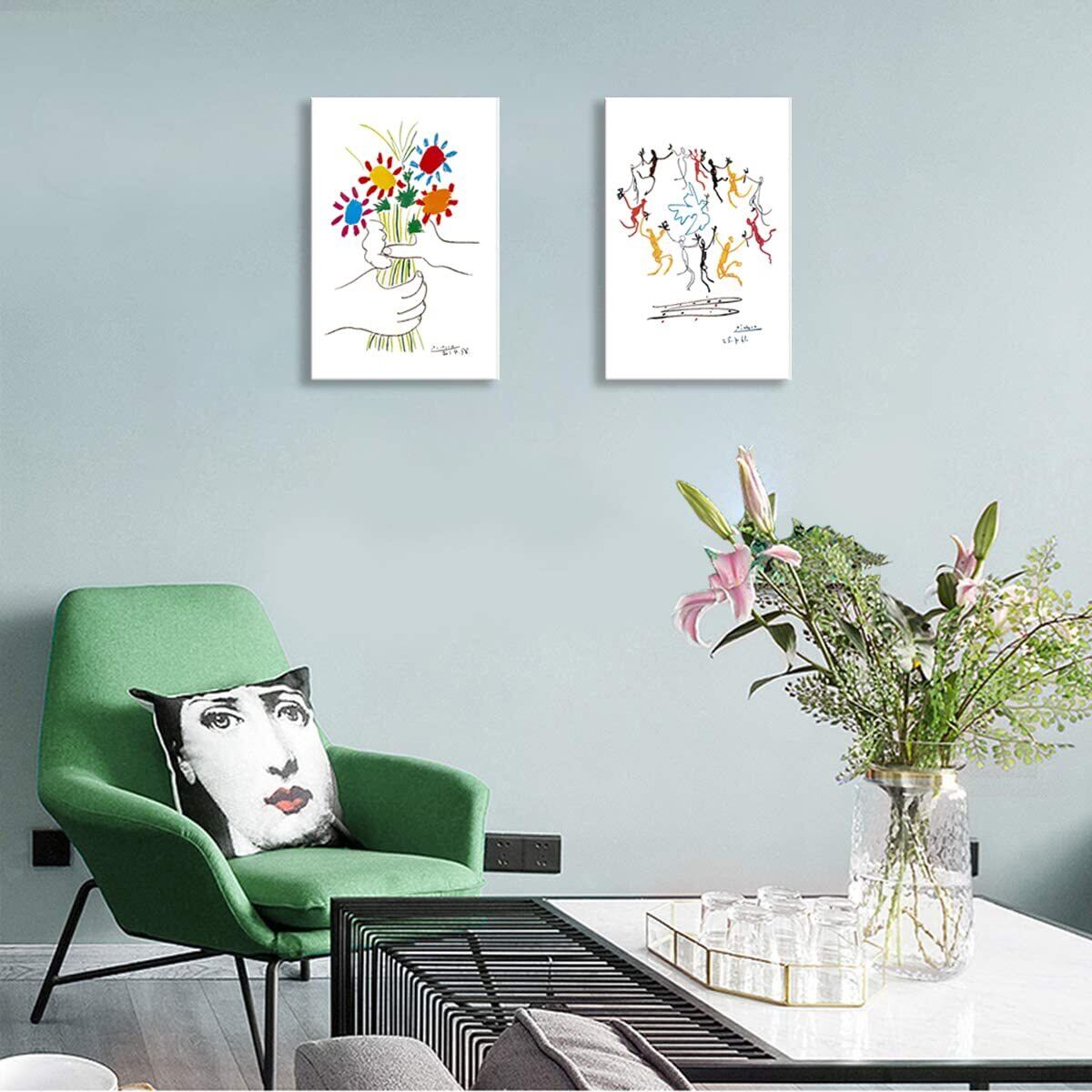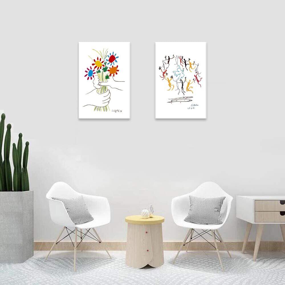 ピカソ ネコの絵 友情の花 絵画 2枚セット アートパネル アートフレーム 玄関 ポスター 装飾画 キャンバス 飾り絵 壁掛け 壁飾り 壁の絵 木枠付きの完成品 (30x40cm x2Pcs)