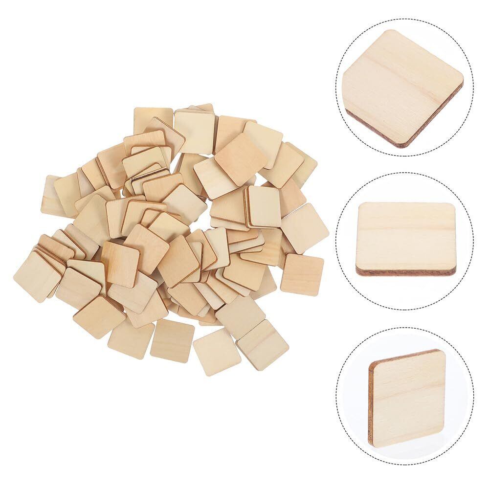 OSALADI ミニ ブランク 木材 正方形 クラフト用、100個 3Cm 未完成 木材 正方形 DIY 木製 ピース 切り抜き 子供用 クラフト ドア ハンガー サイン 絵画