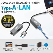 【幅広い互換性】有線LANポートがない薄型のUSB Type-A 搭載パソコンに最適!