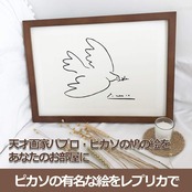 ピカソの有名な絵をレプリカで:天才画家、パブロ・ピカソが平和への願いを込めて描いた鳩の絵のレプリカです。アートフレームの落ち着いたイメージでシンプルな木製枠が、絵を一層引き立てています。