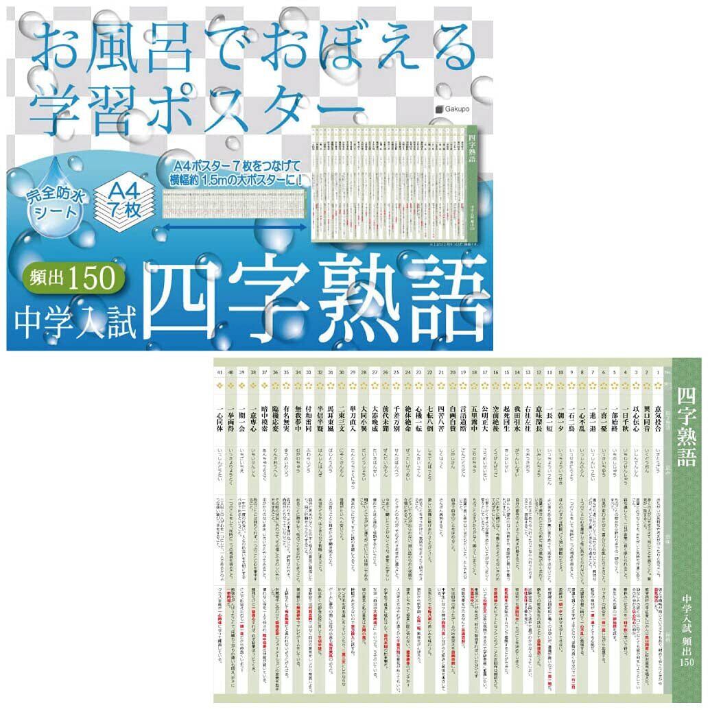 Gakupo お風呂でおぼえる学習ポスター 中学入試 四字熟語 頻出150 中学受験 国語 防水 教材