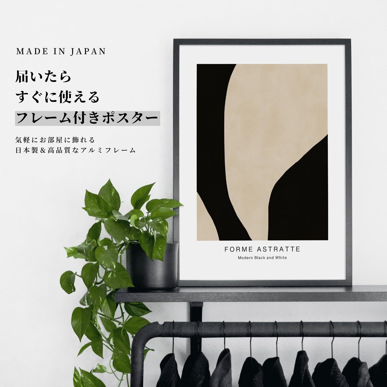 こちらは、ベージュ&ブラックをモチーフとした北欧デザインのブラックフレーム付きポスターです。ポスターがフレームに入った状態で届きますので、届いたらすぐにお部屋に飾って頂けます。