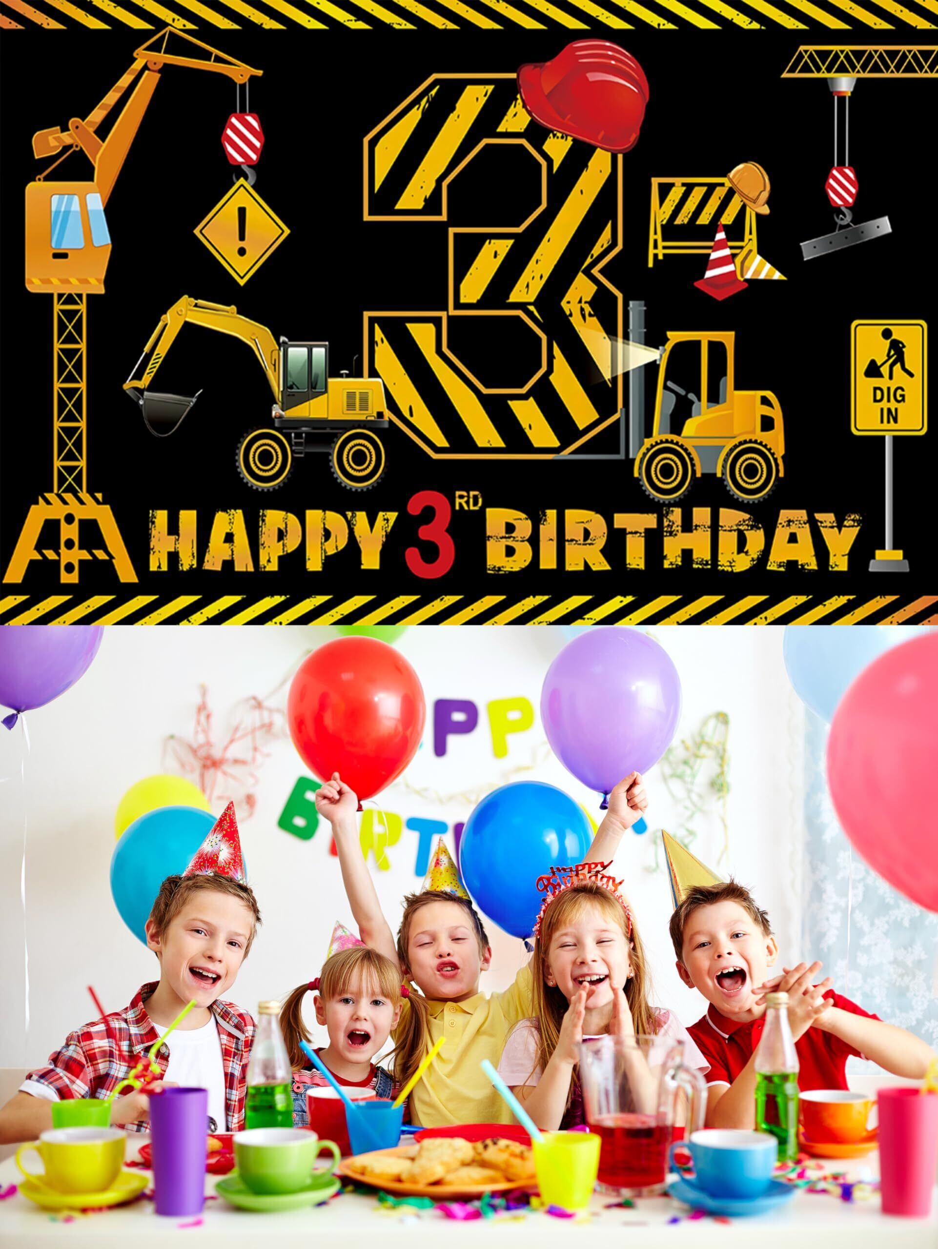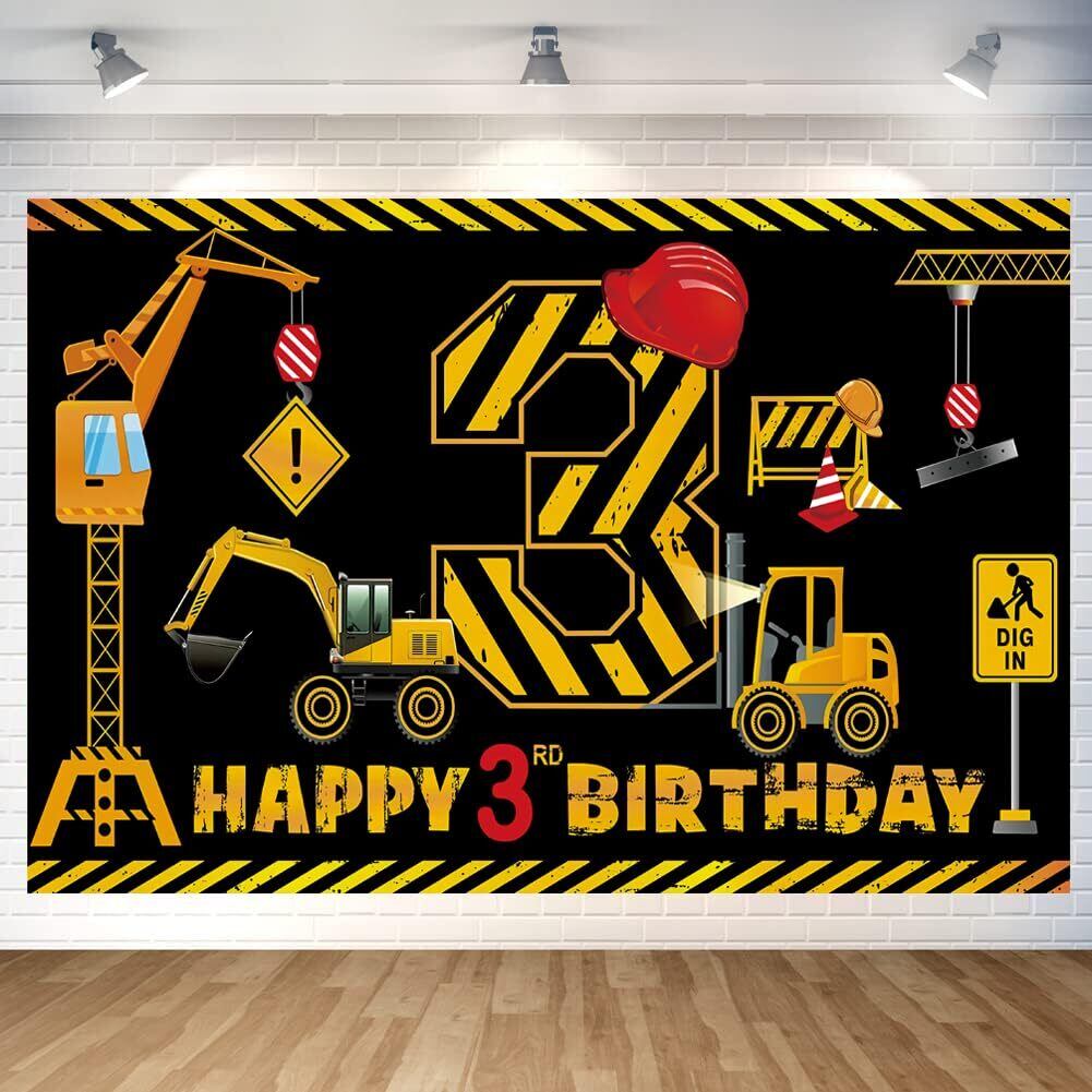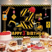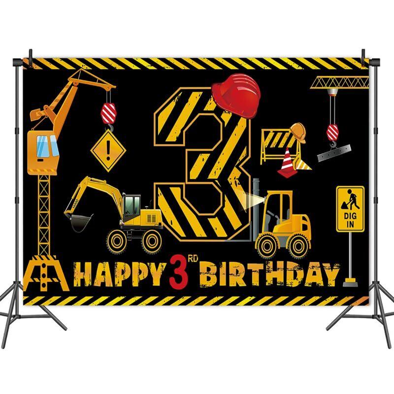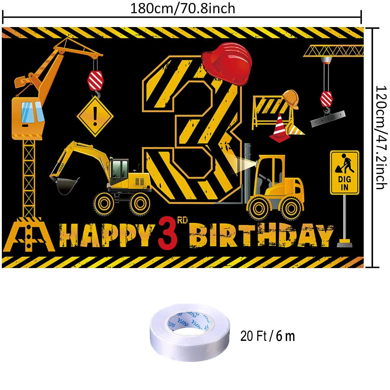 三歳 建設 バースデー タペストリー 男の子 工事 建築 誕生日 飾り付け タペストリー ショベルカー ミキサー車 クレーン車 誕生日 壁掛け 写真背景 Happy Birthday パーティー フォトポスター おうちスタジオ 180x120cm