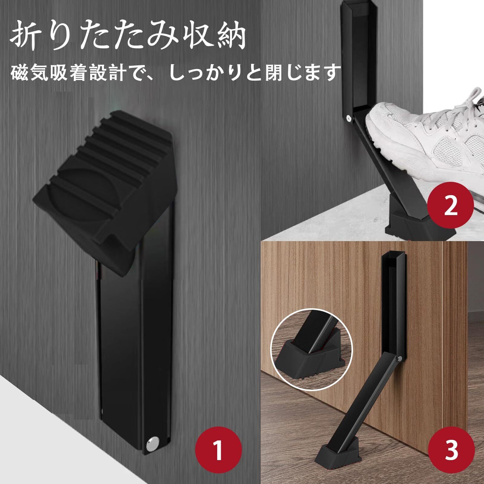Cictokp ドアストッパー 玄関 マグネット折り畳み式のデザインで 使用しない時は収納することができ 省スペースで見た目もすっきり マンションや一戸建ての玄関ドアに適しており 穴開け不要 玄関扉 玄関ドア ブラック スチール製ドア 鉄製ドア 重いドア 磁石がつく マグネットが付く 出入口 マンション アパートなど