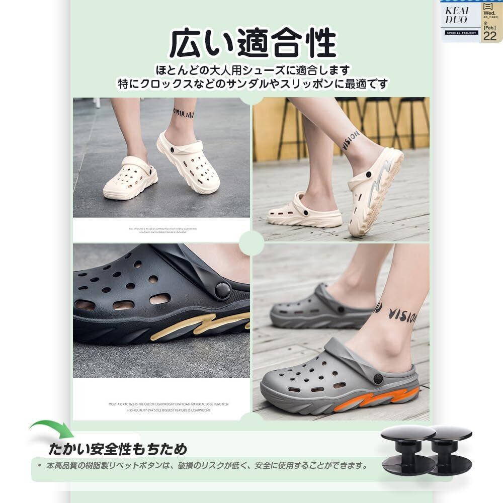 このセットには6ペアのリベットボタンが含まれており、交換用の留め具として非常に便利です。黒と白の2色が揃っているため、どんなデザインのサンダルにも合わせやすく、カスタマイズが可能です。