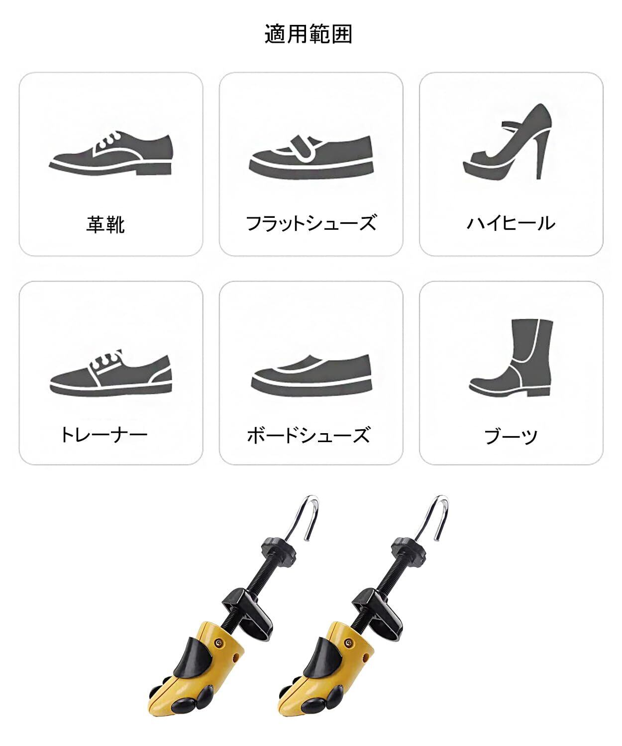 【快適なフィット感を実現】きつい靴で足が痛いとお困りの方に、簡単に靴の幅や長さを調整できる設計です。かかと、つま先、靴が足にぴったりフィットするように調整可能。ストレッチャーを靴に差し込むだけで、快適な履き心地をすぐに実感できます。