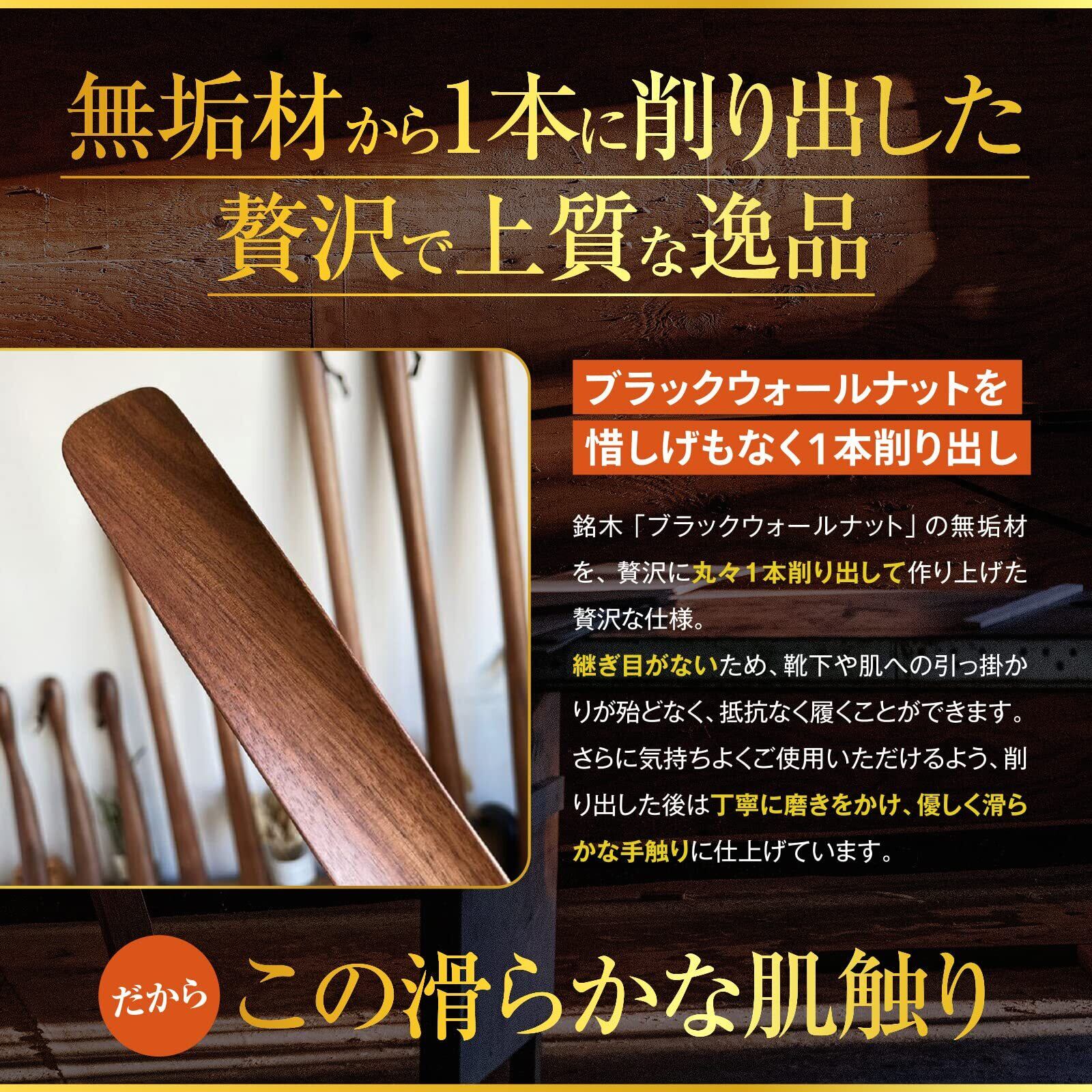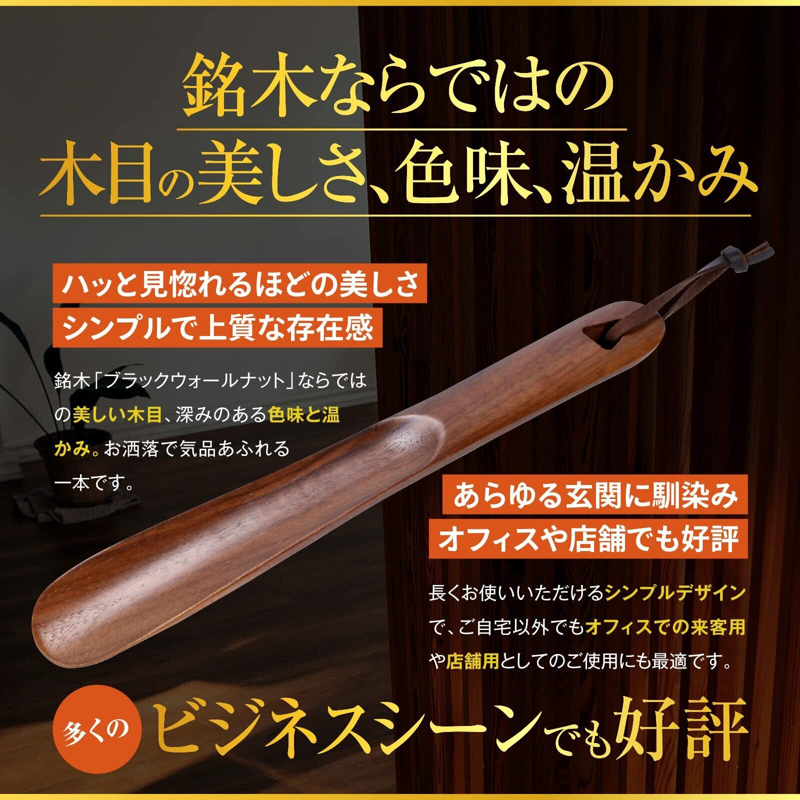 ブラックウォールナットは、耐久性に優れた素材であり、使うほどにその色合いと風合いが深まります。毎日使用する靴べらとして、しっかりとした作りで長くご愛用いただけるアイテムです。日常のサポート役としても、安心してご使用いただけます。