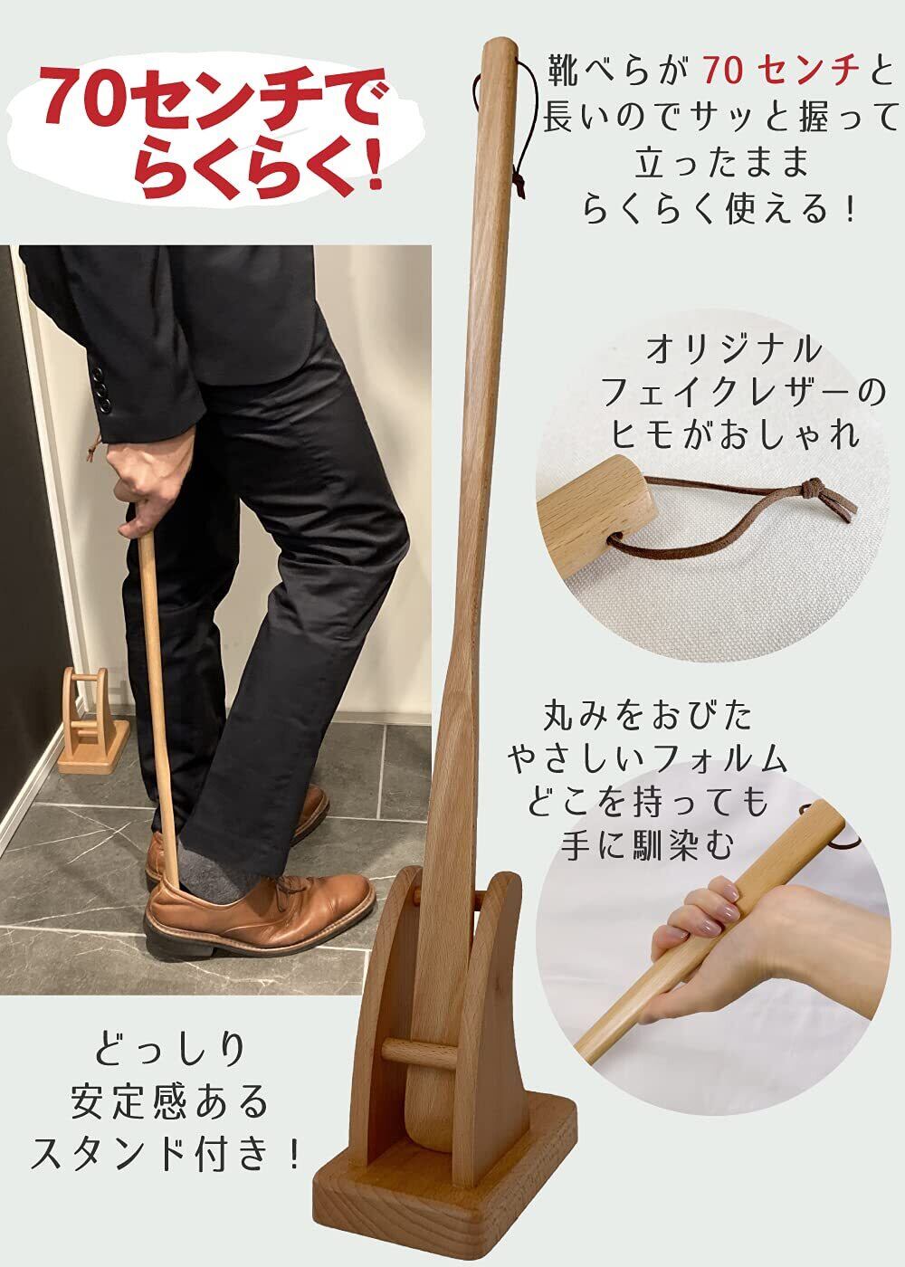 [Noah État de pleine satisfaction] ノア 靴ベラ ロング スタンド付き 木製 おしゃれ 台付き 70cm