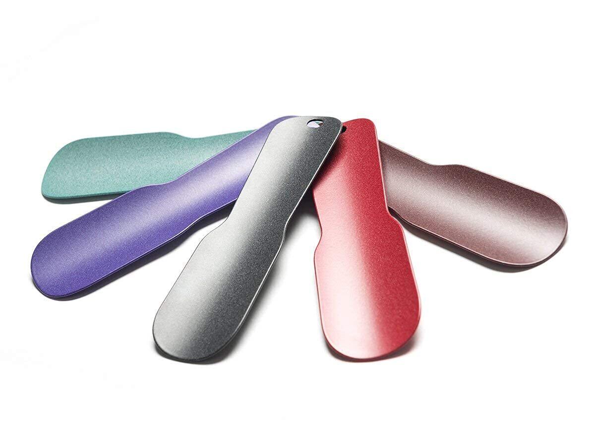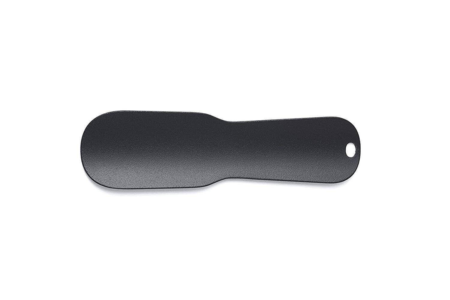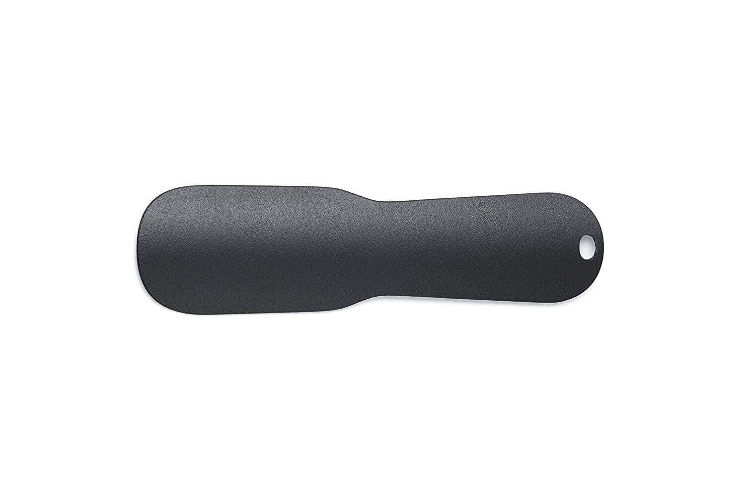 【持ち運びも、家使いも】ポケットや鞄に入れやすいよう平らで薄くなってます。また柄の部分の穴に紐やストラップを通せば、家使いの靴べらとして玄関先に掛けておけます。