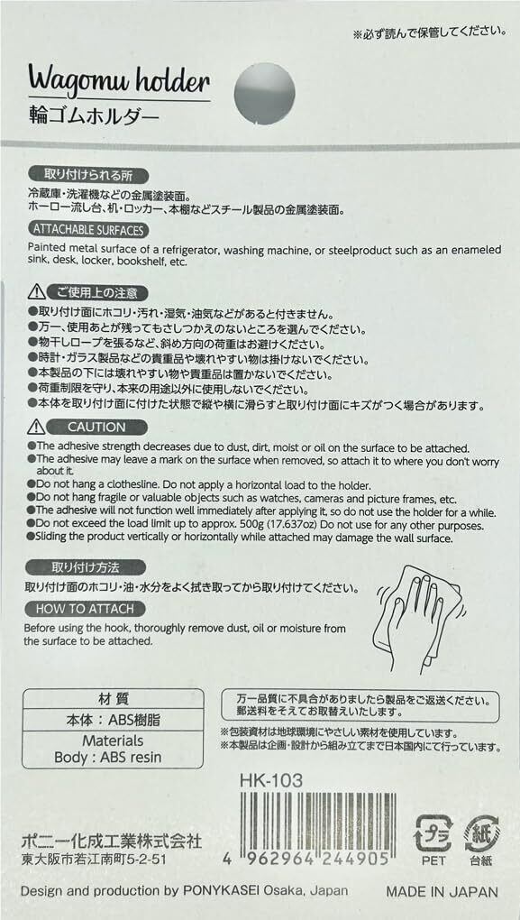 ■サイズ:(パッケージサイズ)8.8cm×15cm ■材質:ABS樹脂 ■着脱:マグネット式 ■:耐荷重:約500gまで ■生産:日本製品 ■Jan:4962964244905 セット:日用品専科ステッカー付 (※ステッカーの付属がない場合は当店またはにご連絡ください):第6912602号
