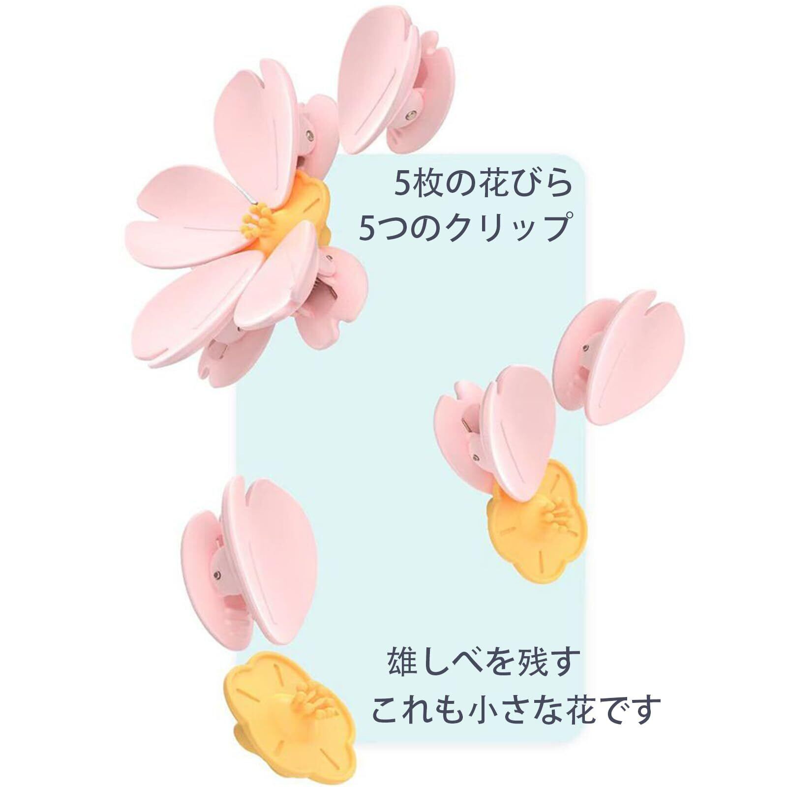 この商品は5点セットでのご提供となっており、異なる場所で使ったり、友人や家族とシェアするのに最適です。各クリップには可愛い桜のデザインが施されており、皆で楽しむことができます。また、プレゼント用としても喜ばれそうです!