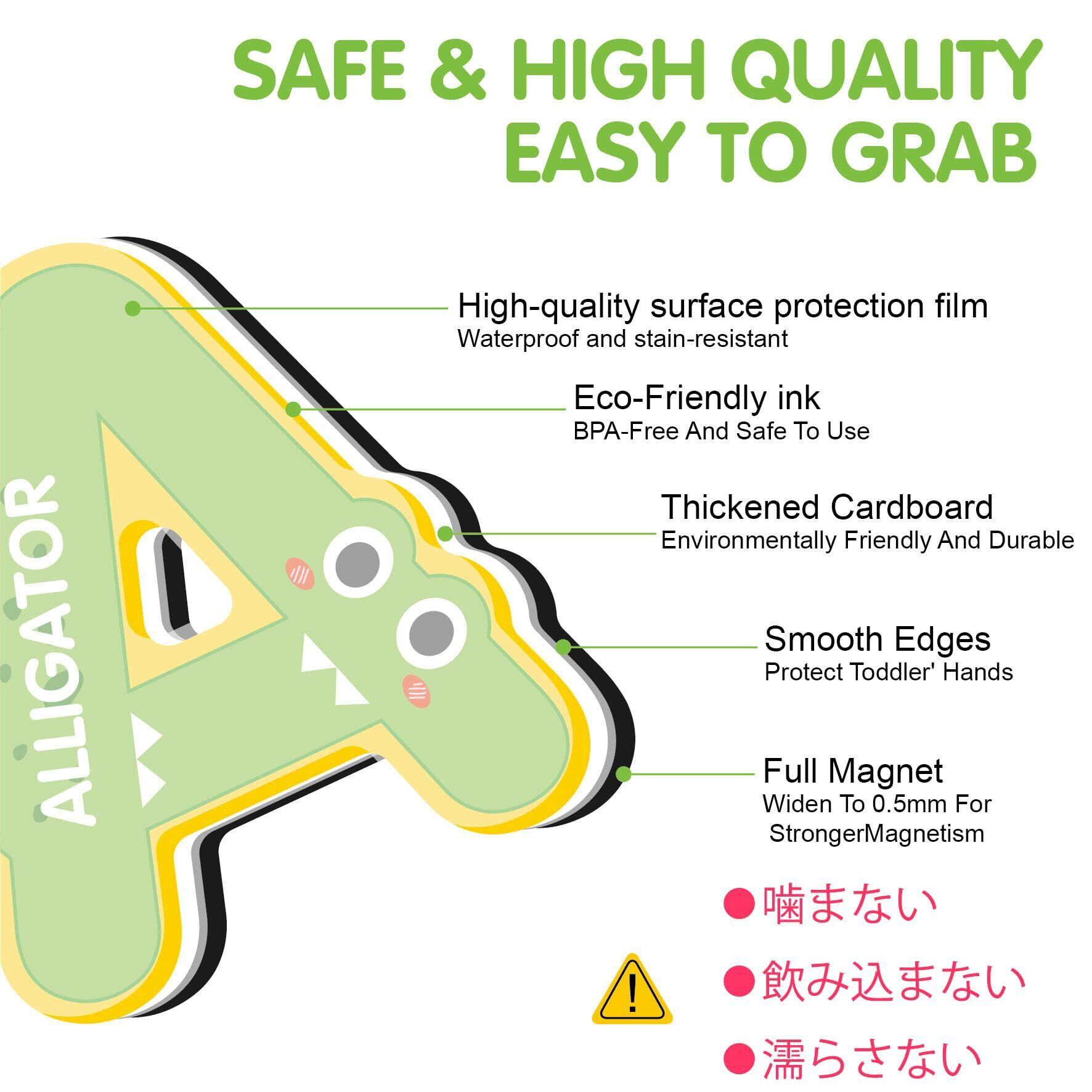 【材質】安全の軟磁材料、厚手素材+丸角化工で安全性重視し、赤ちゃんも触れても安心の環境対応素材、冷蔵庫の開閉もラクラクです。