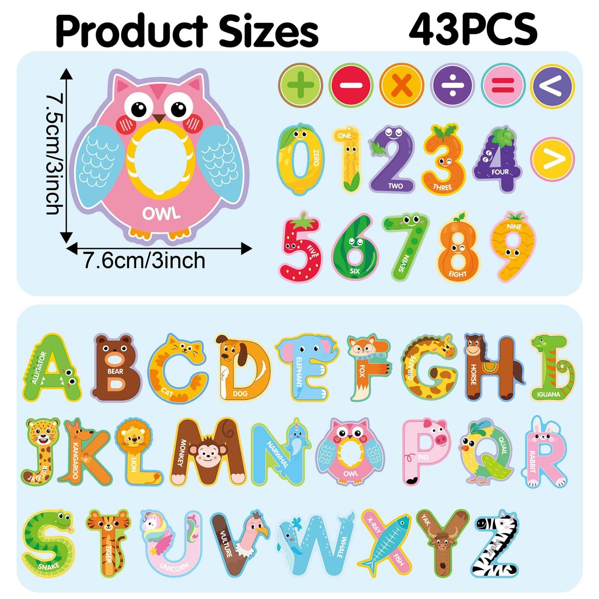 CELAENO 子供 マグネット 冷蔵庫 ホワイトボード 英語 文字 アルファベット 数字 磁気 強力 多数量 家庭 オフィス 学校 教育 ステッカー プレゼント 43pcs