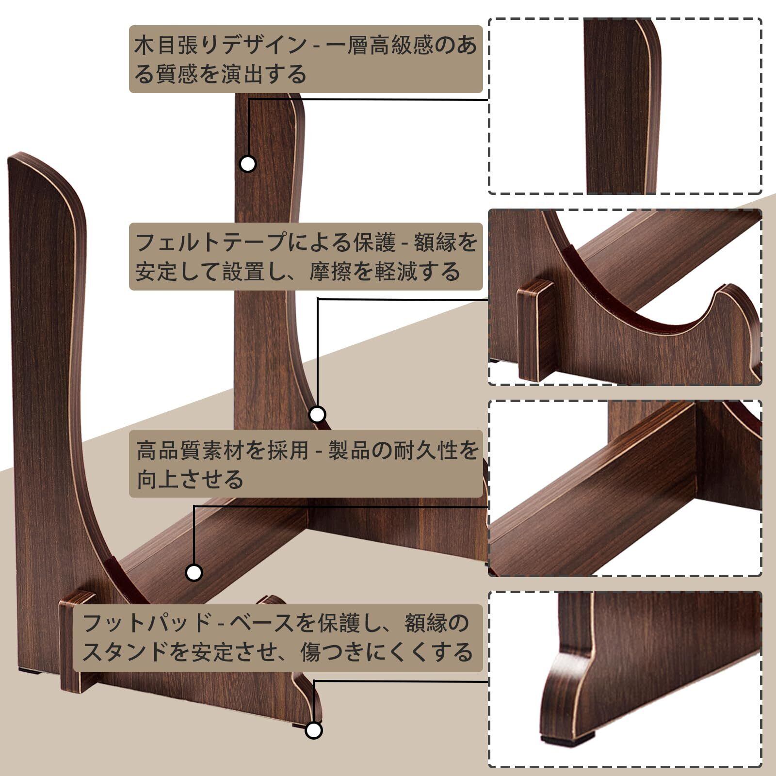 高級感ある保護システムで大切な品を優しく守る :底部に配置した高密度滑り止めクッションがスタンド全体の安定性を確保。表面には特殊加工のソフトフェルトを採用し、繊細な遺影写真立てや高級感ある木製皿立て、大切な賞状などに傷がつくのを防ぎます。従来の金属製スタンドとは異なり、陶器の皿立てとしても、格式ある額縁スタンドとしても安心して使用できます。軽量ながら頑丈な作りで、持ち運びにも最適です。