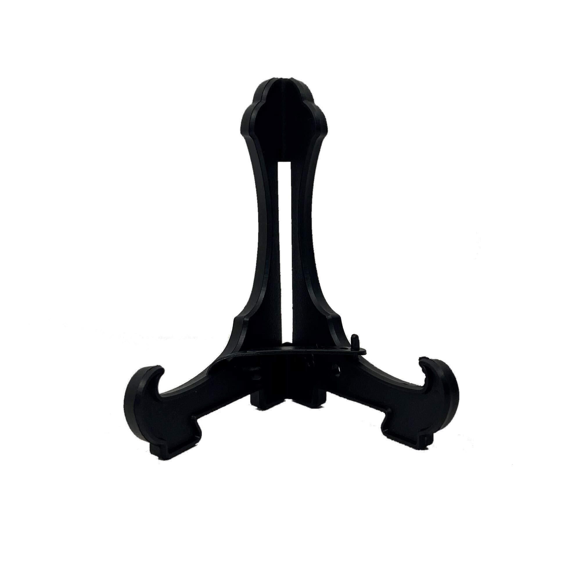 バンドで足を止めるタイプの皿立てディスプレイスタンド。皿立て。ちいさな額立てとしても利用できます。