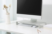ディスプレイの下のスペースを有効活用でき、キーボードやマウスなどの収納に便利です。