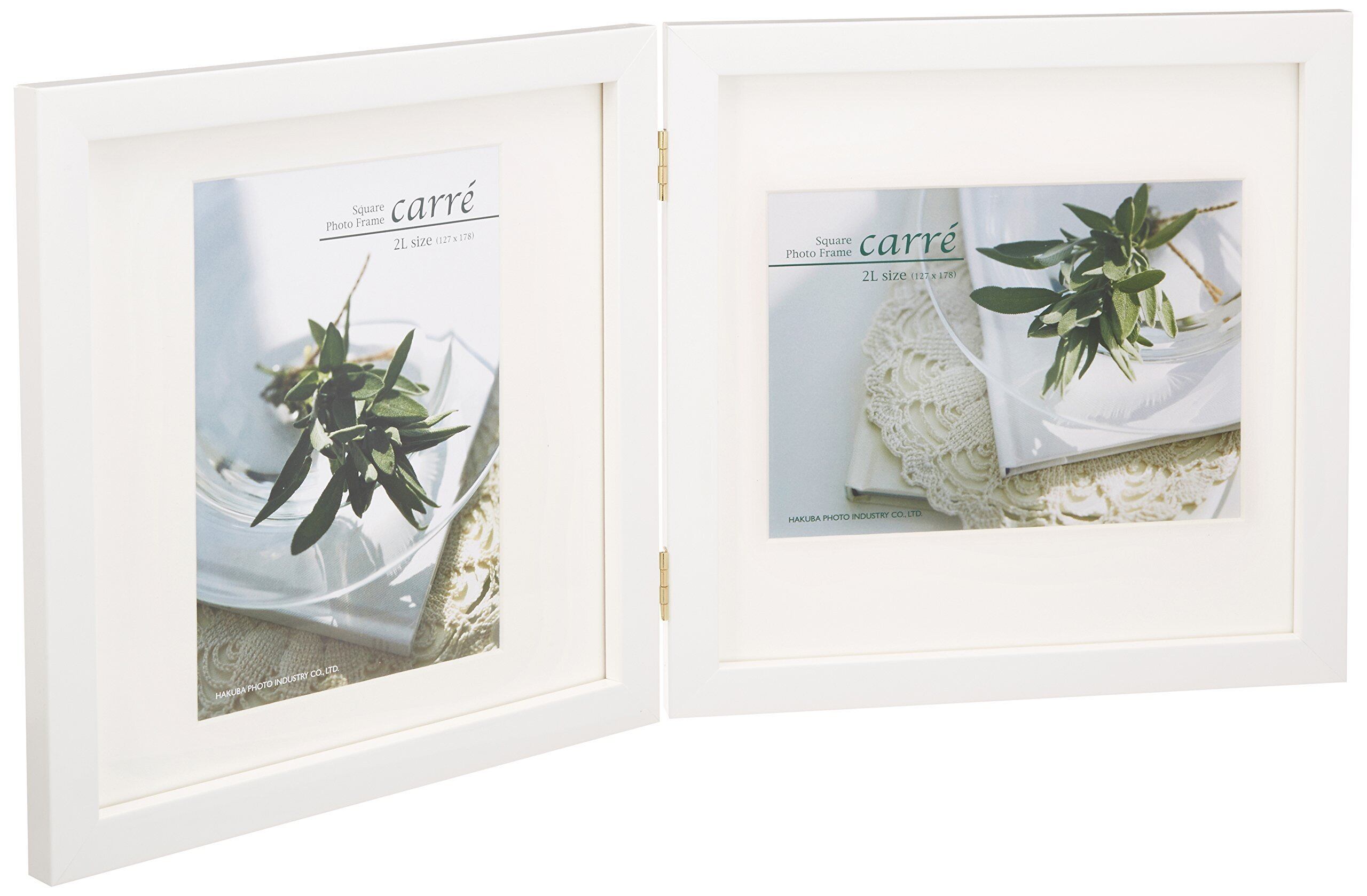 ハクバ HAKUBA フォトフレーム スクウェア 木製 額 カレ 2L サイズ 2面 ホワイト 2L 木製 FSQCR-WT2L2 軽くて割れないPET板を採用 タテヨコ兼用