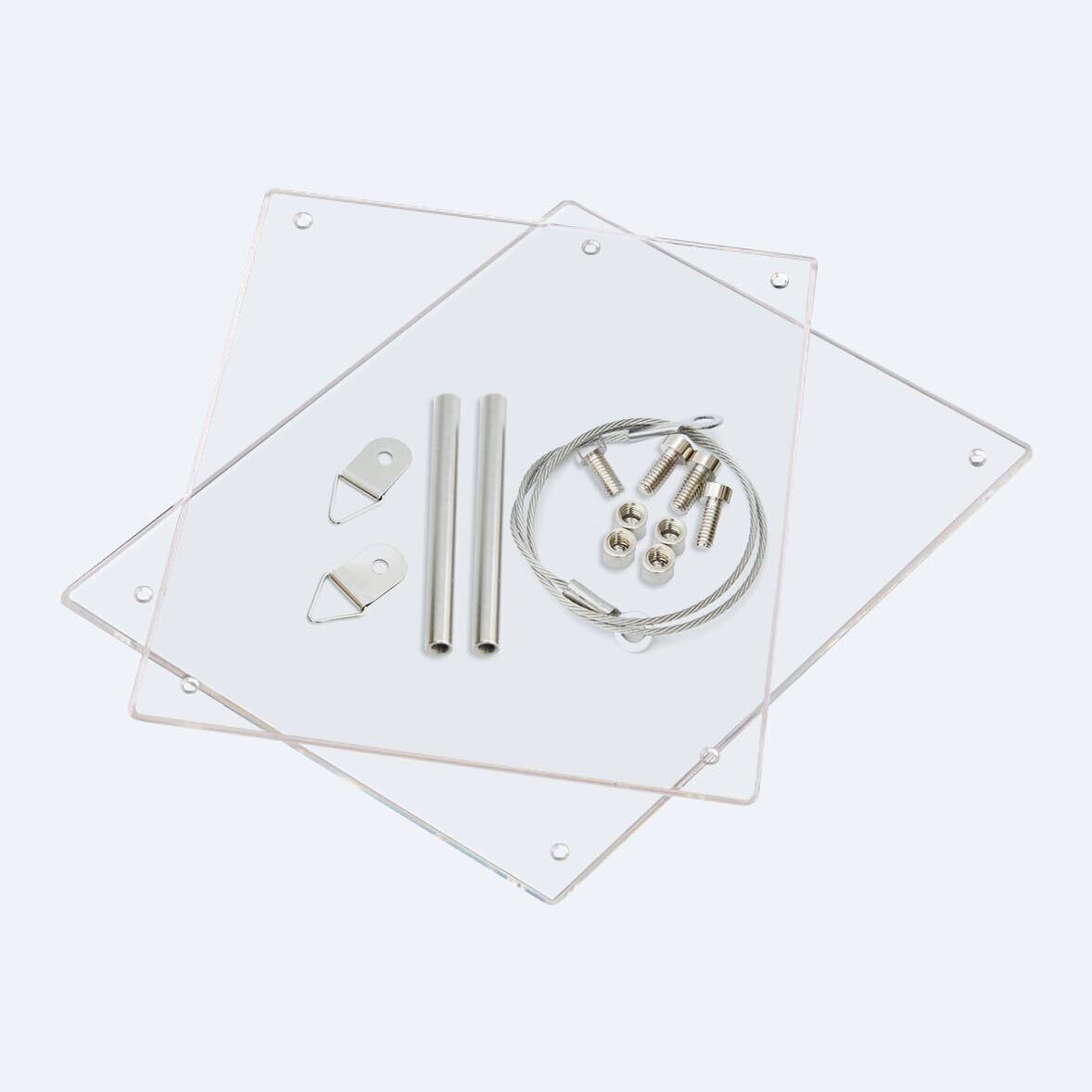 【簡単な交換と組み立て】到着後は保護フィルムを剥がしてご使用ください。2枚のアクリル板に挟む、四隅にスネジを付けるだけで組み立て完了。A3サイズの画像や賞状用紙の差し替えも簡単。縦置き・横置き対応で、スタンドの位置を変えるだけで置き方を変更可能。フレームにワイヤーを取り付けて壁掛けできます。