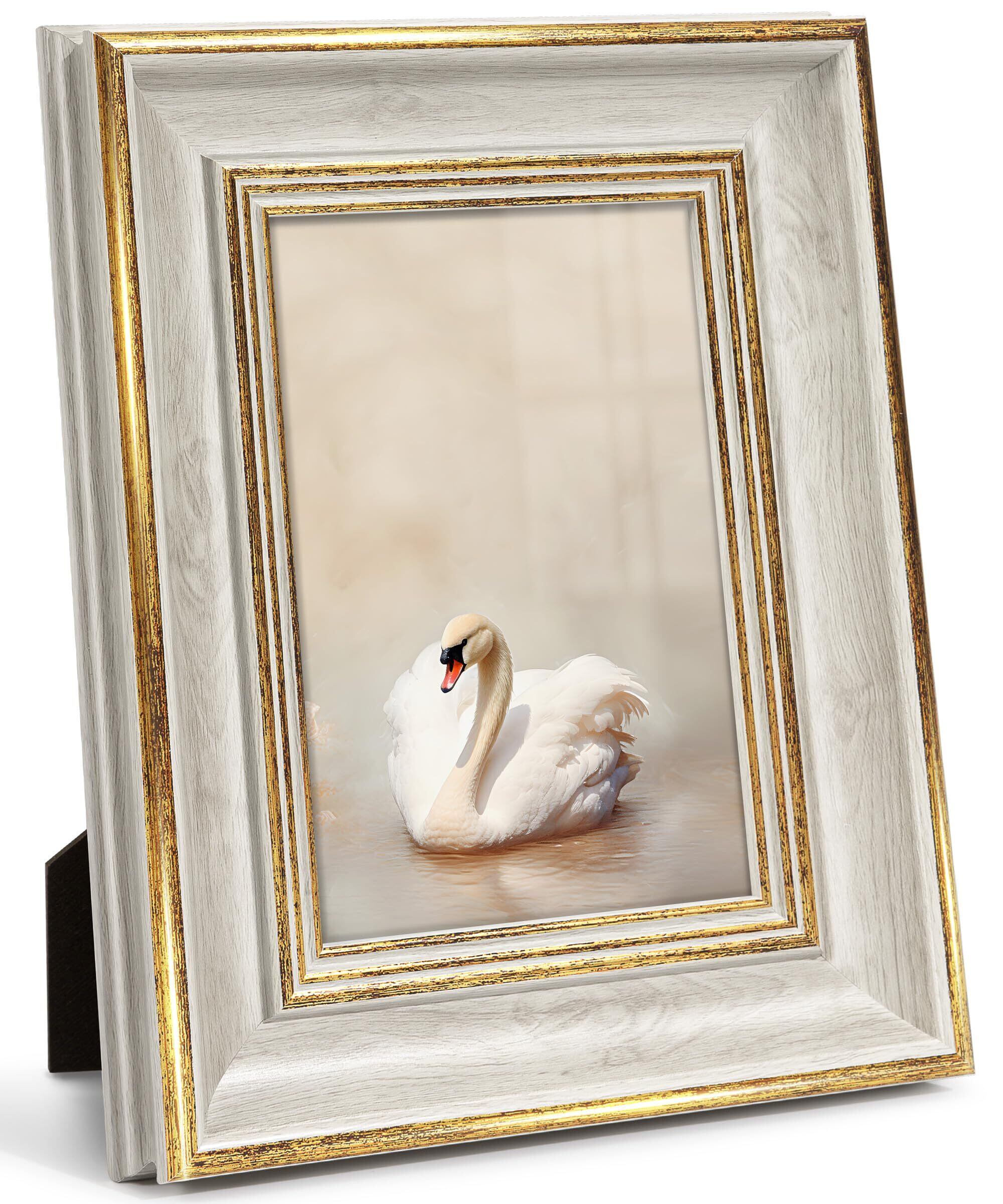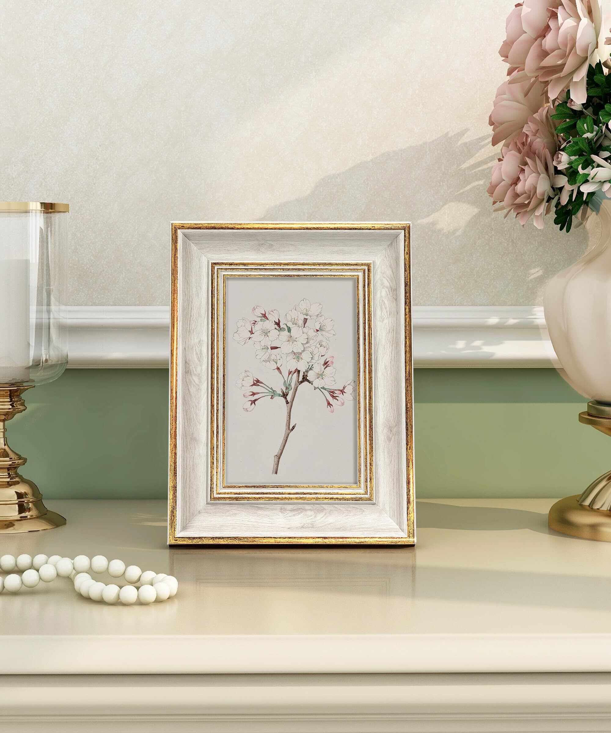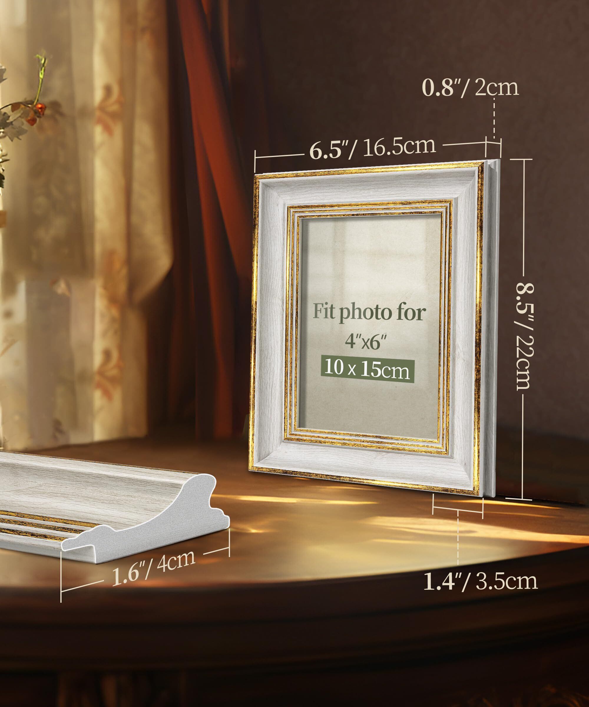 Afuly フォトフレーム KG/ハガキ(10x15cm)おしゃれ 写真たて アンティーク ホワイト ゴールド 縦横置き 額縁 壁掛け お祝い 記念日 誕生日 ナチュラル プレゼント バレンタイン 装飾