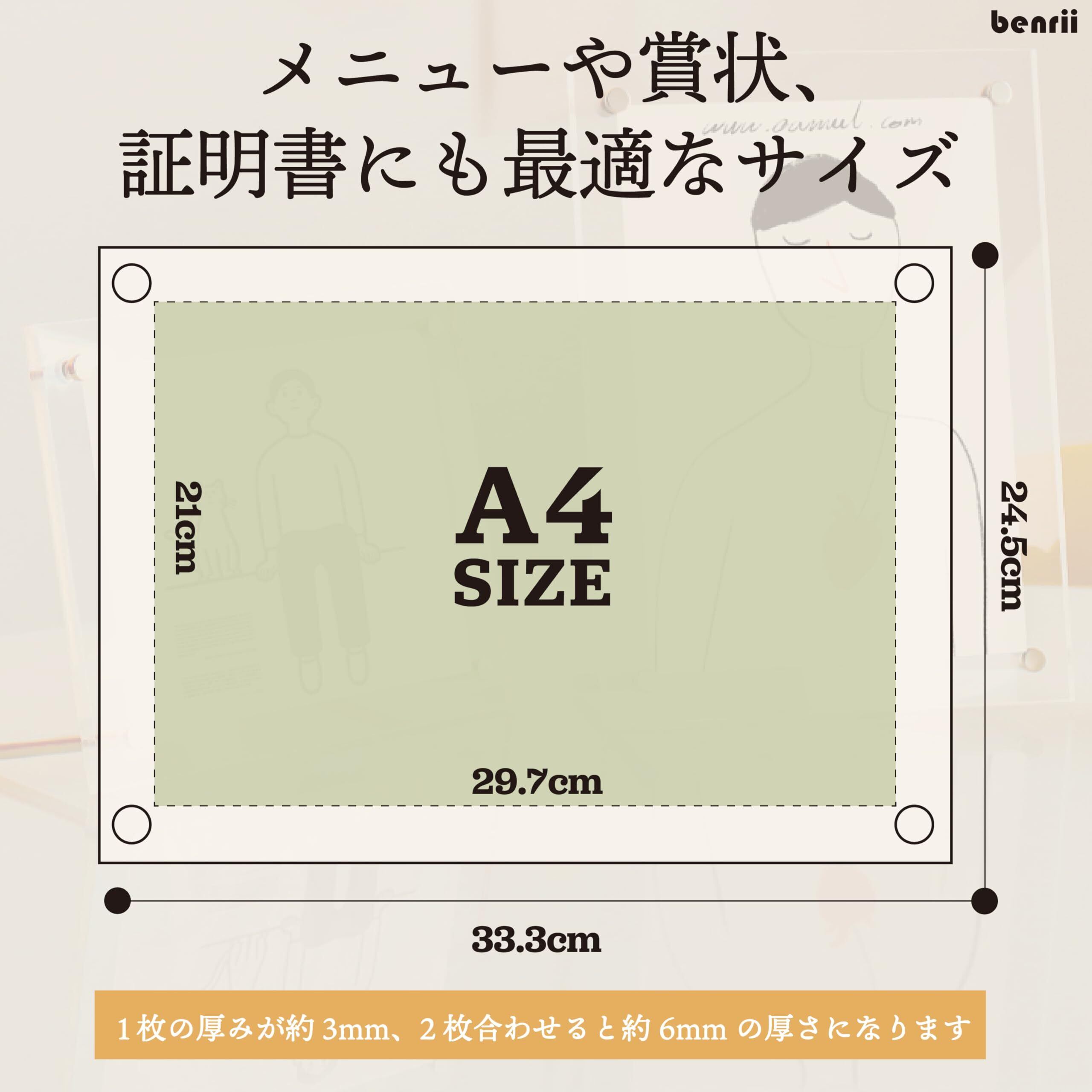 benrii A4サイズ アクリルフォトフレーム 写真立て クリア 写真フレーム 両面透明 縦横兼用 スタンドタイプ 賞状 ウエルカムボード 保護フィルム付き