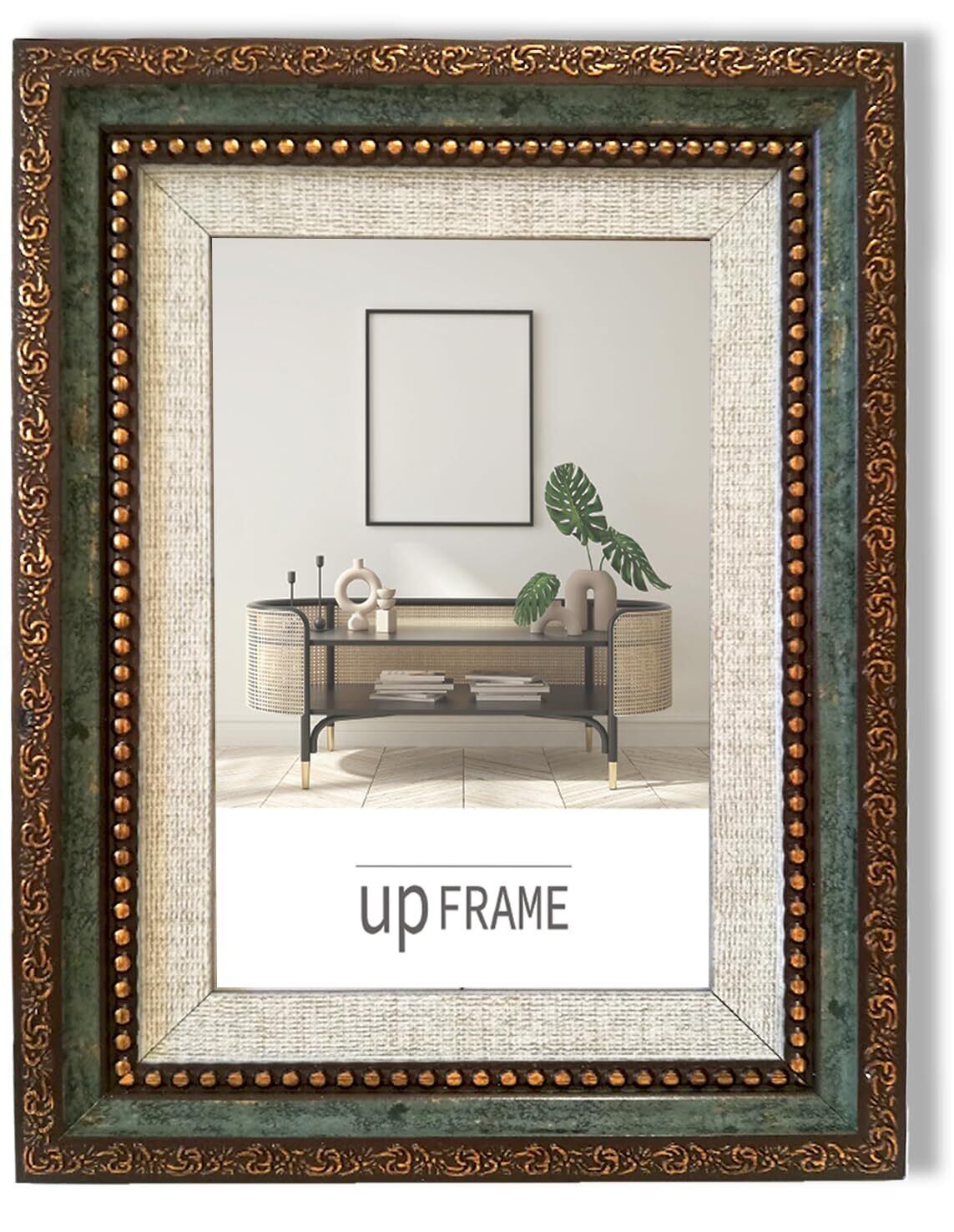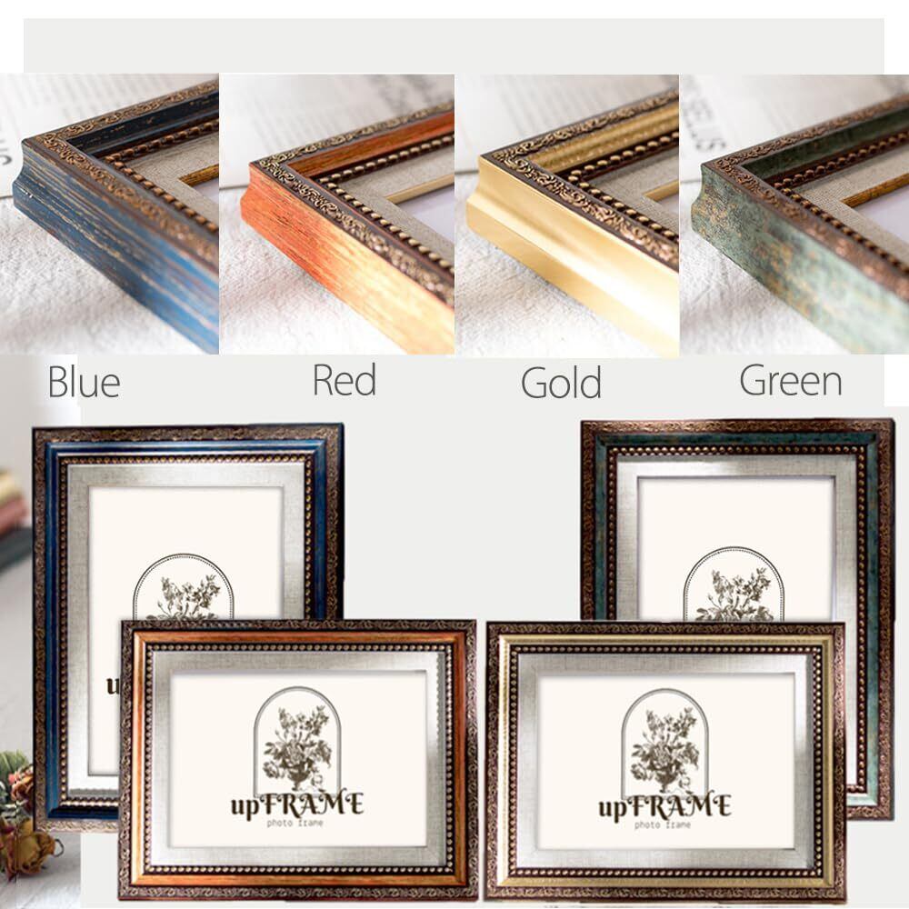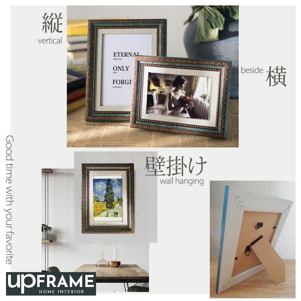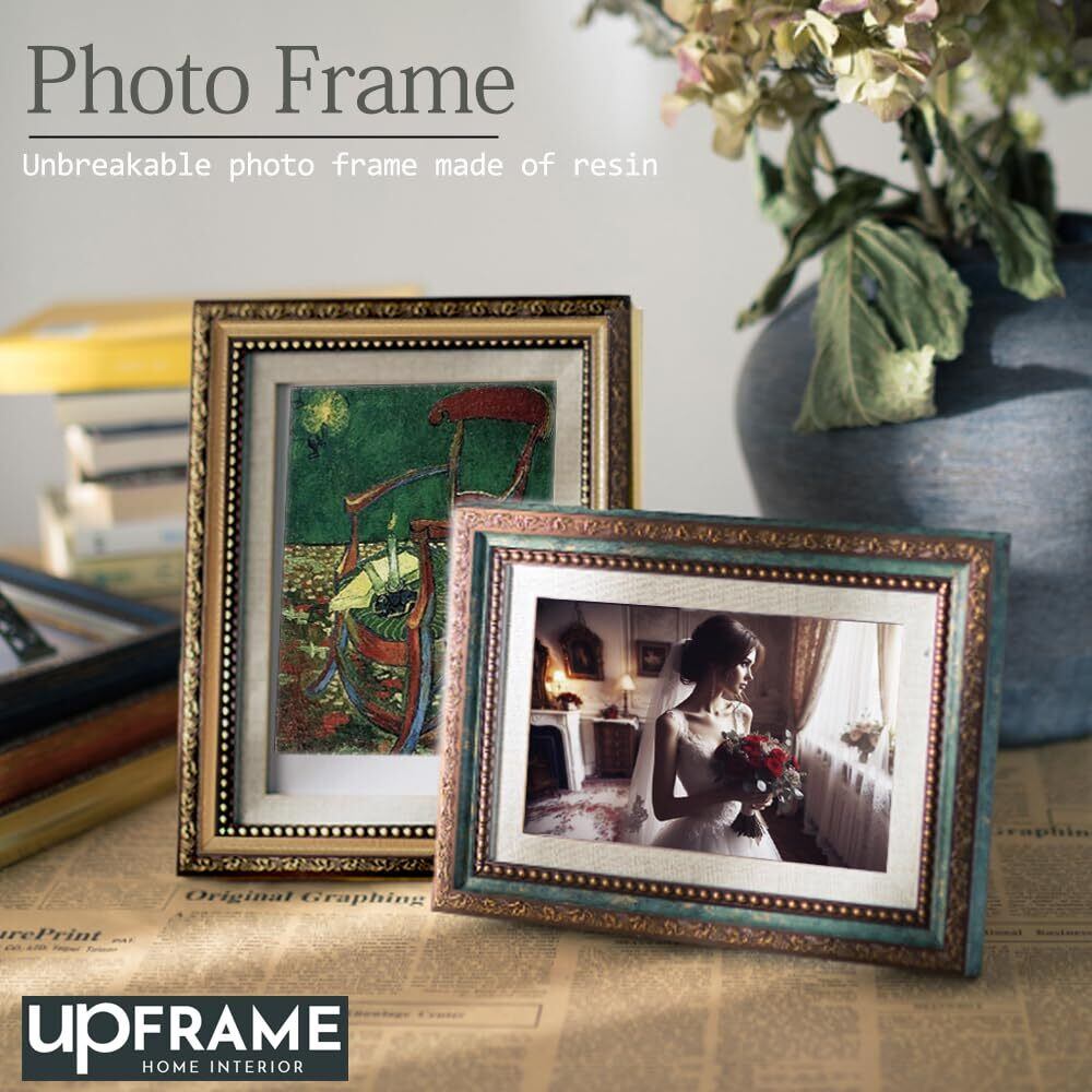 アンティーク風 写真立て おしゃれ フォトフレーム 額縁 御洒落 樹脂製 置き掛け兼用 レトロ アンティーク ヴィンテージ 壁掛け 卓上 縦横兼用 額縁 (10x15cmハガキ, Green)