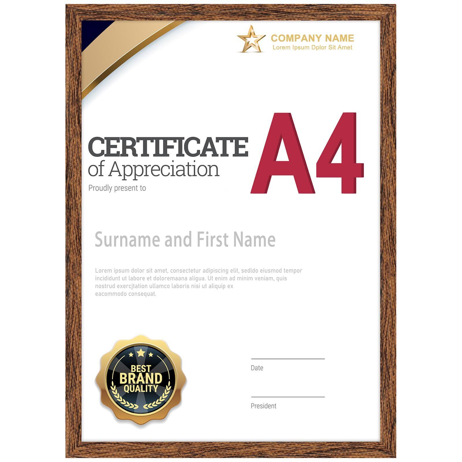 Wtrgas フォトフレーム A4 賞状額 木目調 表彰状 写真 額縁 壁掛け用 卓上用 ブラウン 1枚