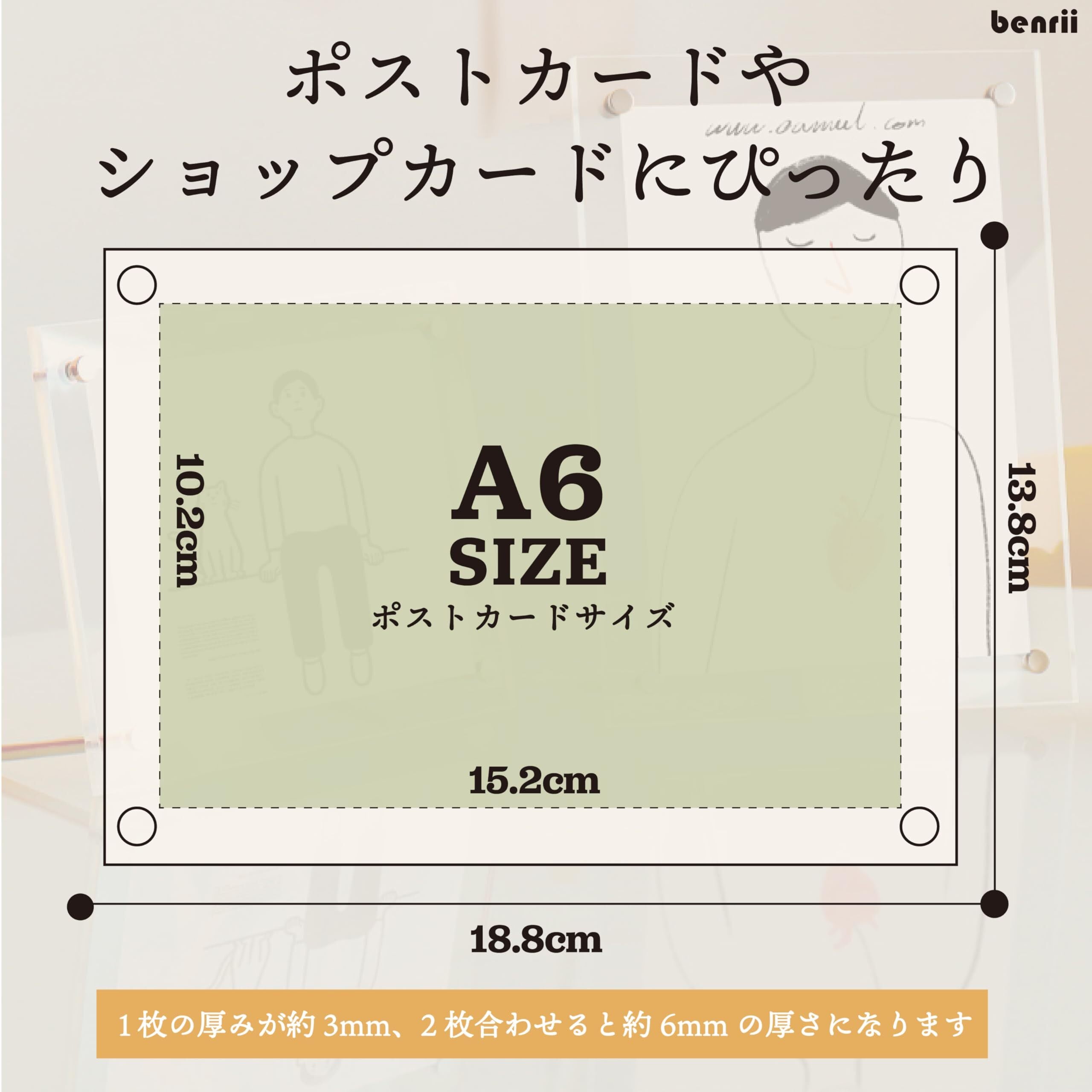 benrii A6 ポストカード アクリルフォトフレーム 写真立て 額縁 スタンドタイプ 横置き縦置き兼用 写真フレーム 両面透明 ハガキ
