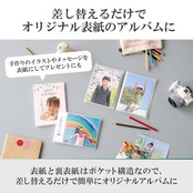 ポケット構造になっているので、表紙の写真をお気に入りの1枚に入れ替えるだけで簡単にオリジナルのアルバムがつくれます。