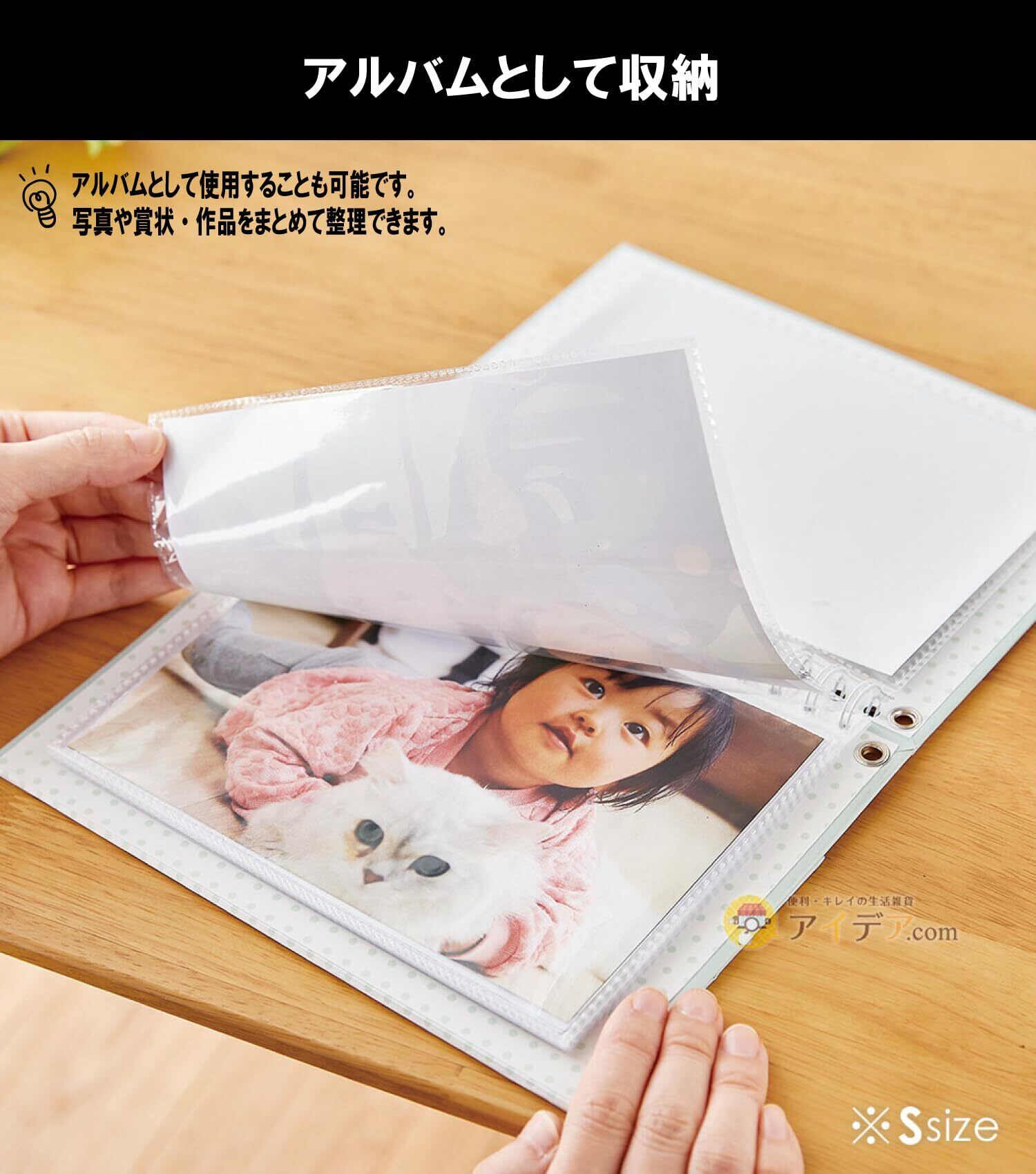 2L判サイズポケット×20枚(12.7×17.8cmまで対応)、メモ台紙×20枚が収納できる