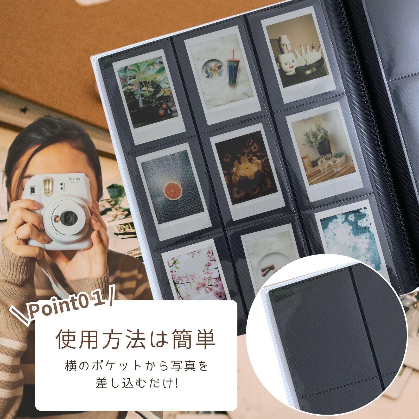 大切な思い出をたっぷり収納できる大容量チェキアルバム!360枚の写真を整理し、いつでもきれいに保管。特別な瞬間をいつでも手に取り、見返す楽しさが広がります!