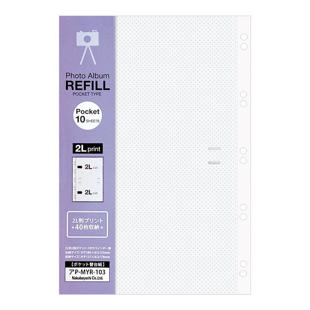 ナカバヤシ ポケットアルバム替台紙 バインダー式 2L 10枚セット アP-MYR-103-W ホワイト