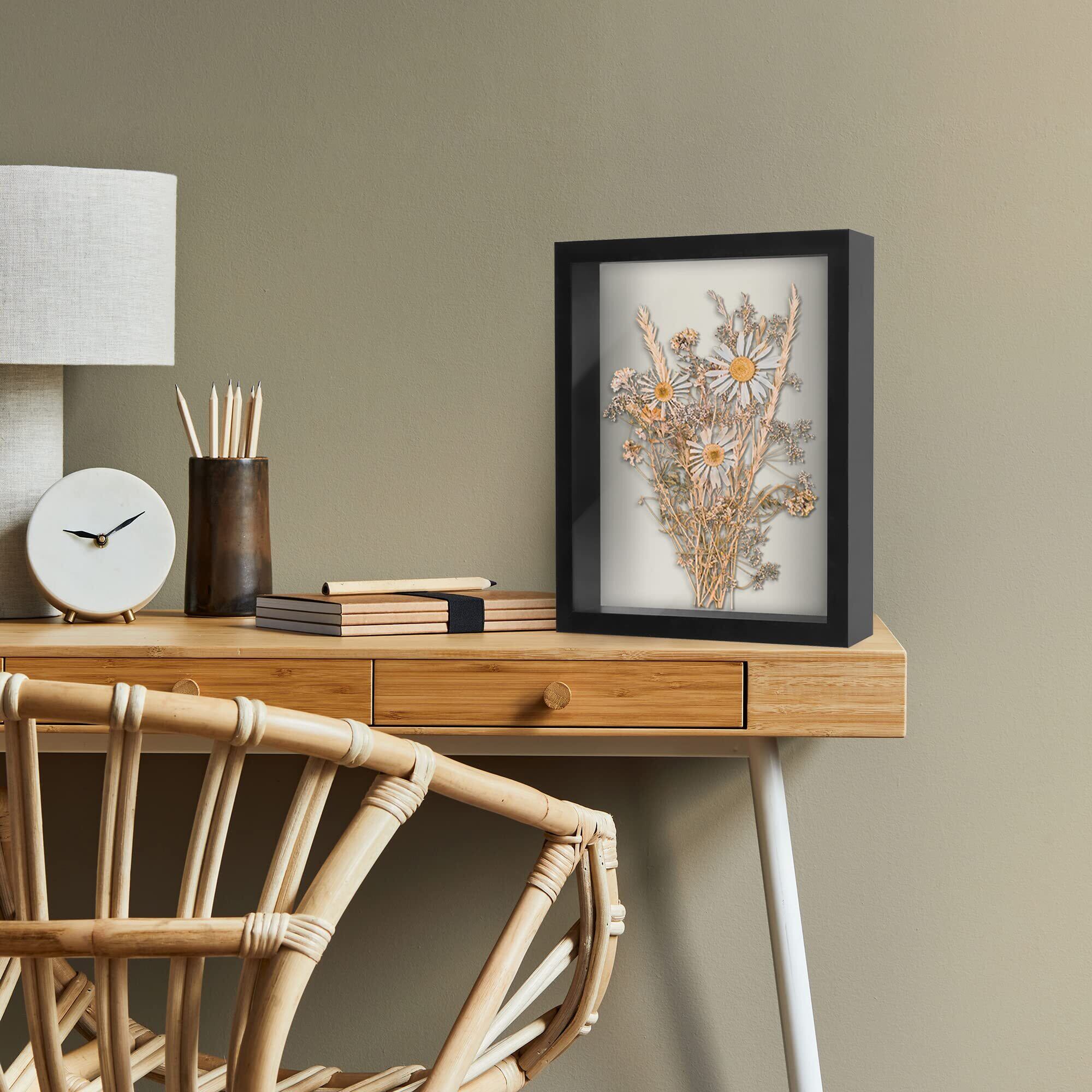 理想的なサイズと耐久性のある素材: この28cm x 36cmシャドーボックスフレームは、モダンな20x60mmモールディングを採用し、耐久性の高い加工木材(MDF)で作られています。ブラック仕上げのデザインが、大切な記念品や思い出の品を美しく引き立てます。