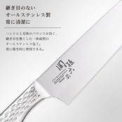 関孫六の匠創シリーズにより、刃物の持つ硬度と耐久性が実現されています。高炭素ステンレス鋼を使用し、食材をスムーズに切り進める切れ味を提供します。日々の使用でも高いパフォーマンスを維持するので、長く愛用いただけます。