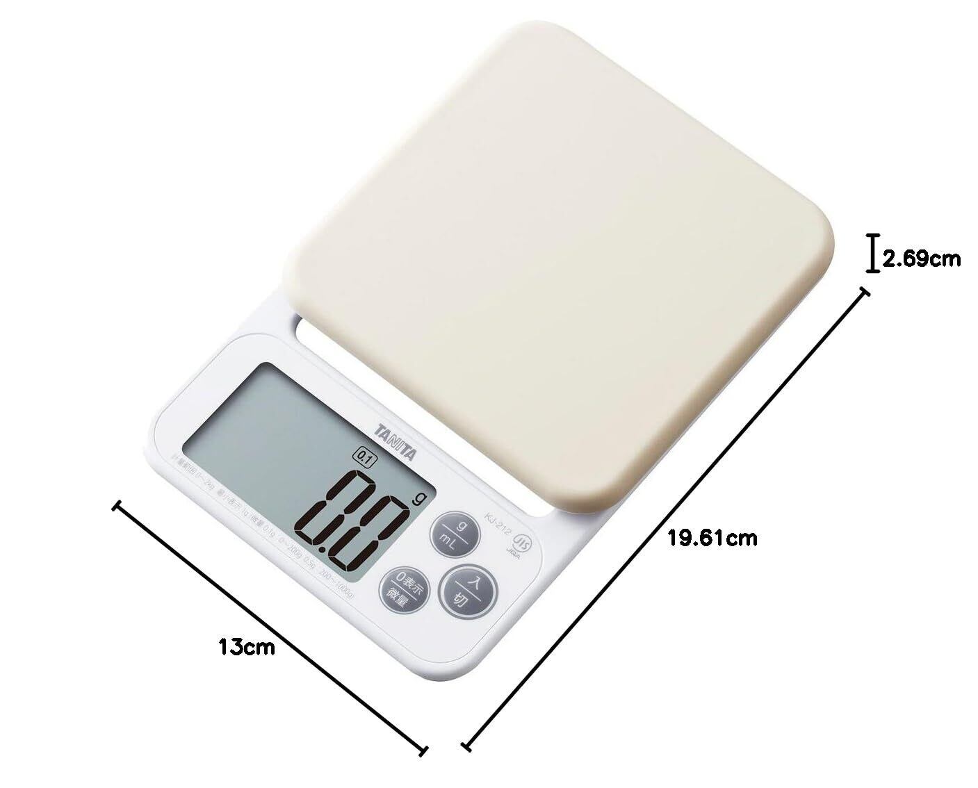 タニタ(Tanita) クッキングスケール シリコンカバー付き 最小表示0.1g 最大計量2kgまで計れる 収納に便利なフック穴付き デジタル はかり ホワイト KJ-212 WH