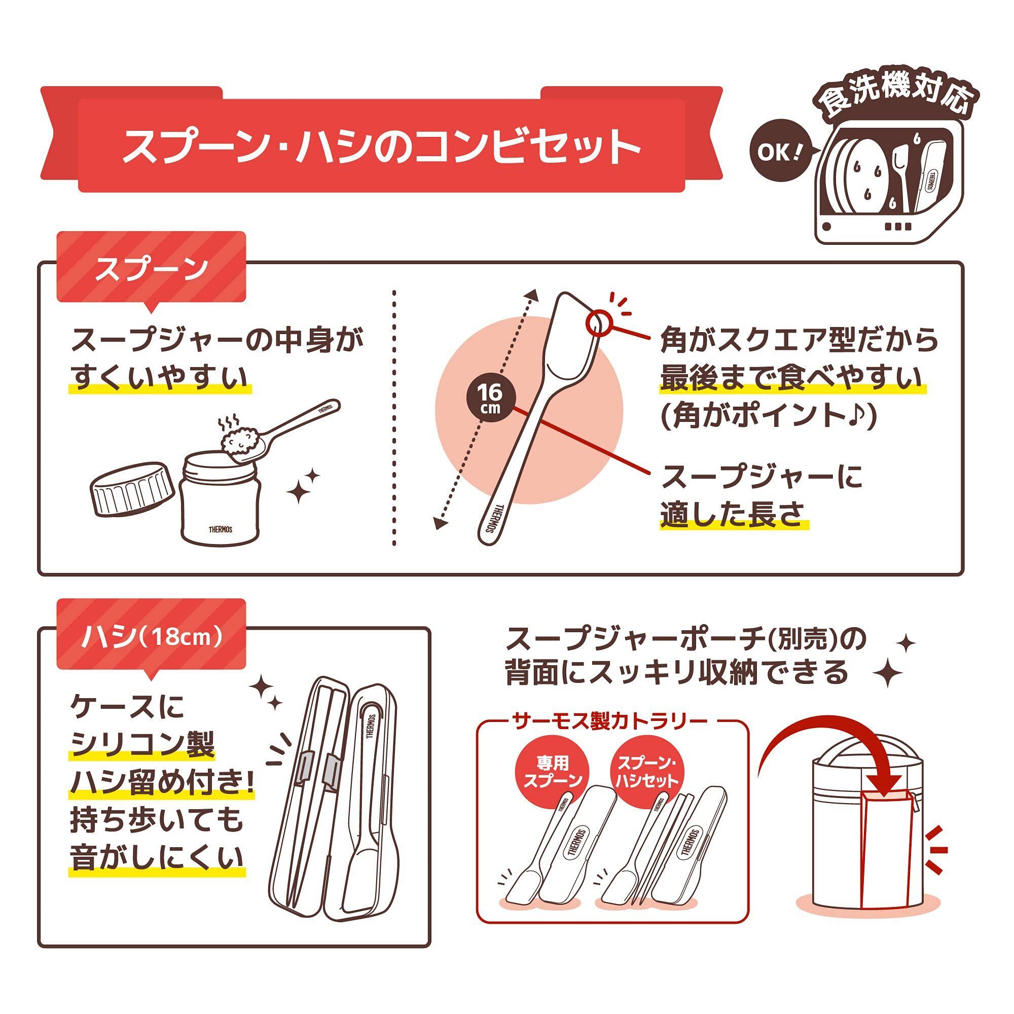 スープジャーと一緒にごはんやサラダが食べられる、スプーンとハシのコンビセット