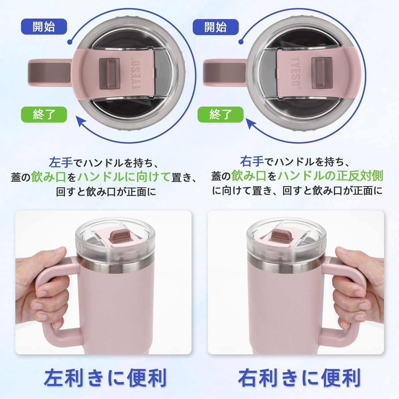 TYESO タンブラー 0.9L 水筒 保冷 ステンレスボトル ウォーターボトル ストロー 取っ手付き ジョッキ アウトドア 真空断熱 二重構造 広口 大容量 直飲 女の子 男の子 900ml 桜色