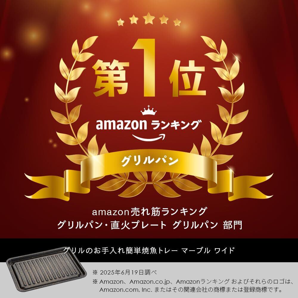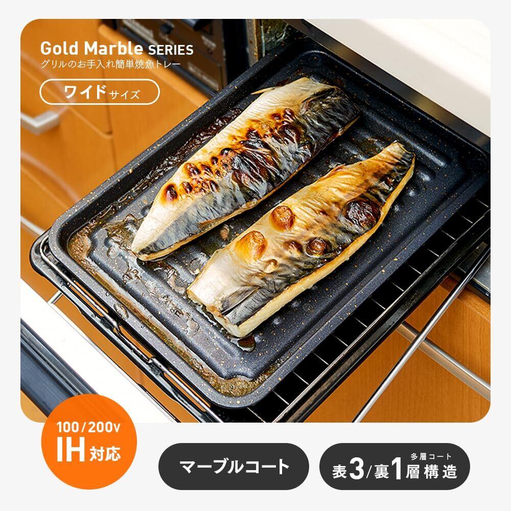 アイメディア(Aimedia) グリルトレー ワイドサイズ グリルプレート 魚焼き器 マーブルコート 魚焼きグリル 調理トレー トースター フッ素コート IH対応 ガス火対応 グリルのお手入れ簡単焼魚トレー