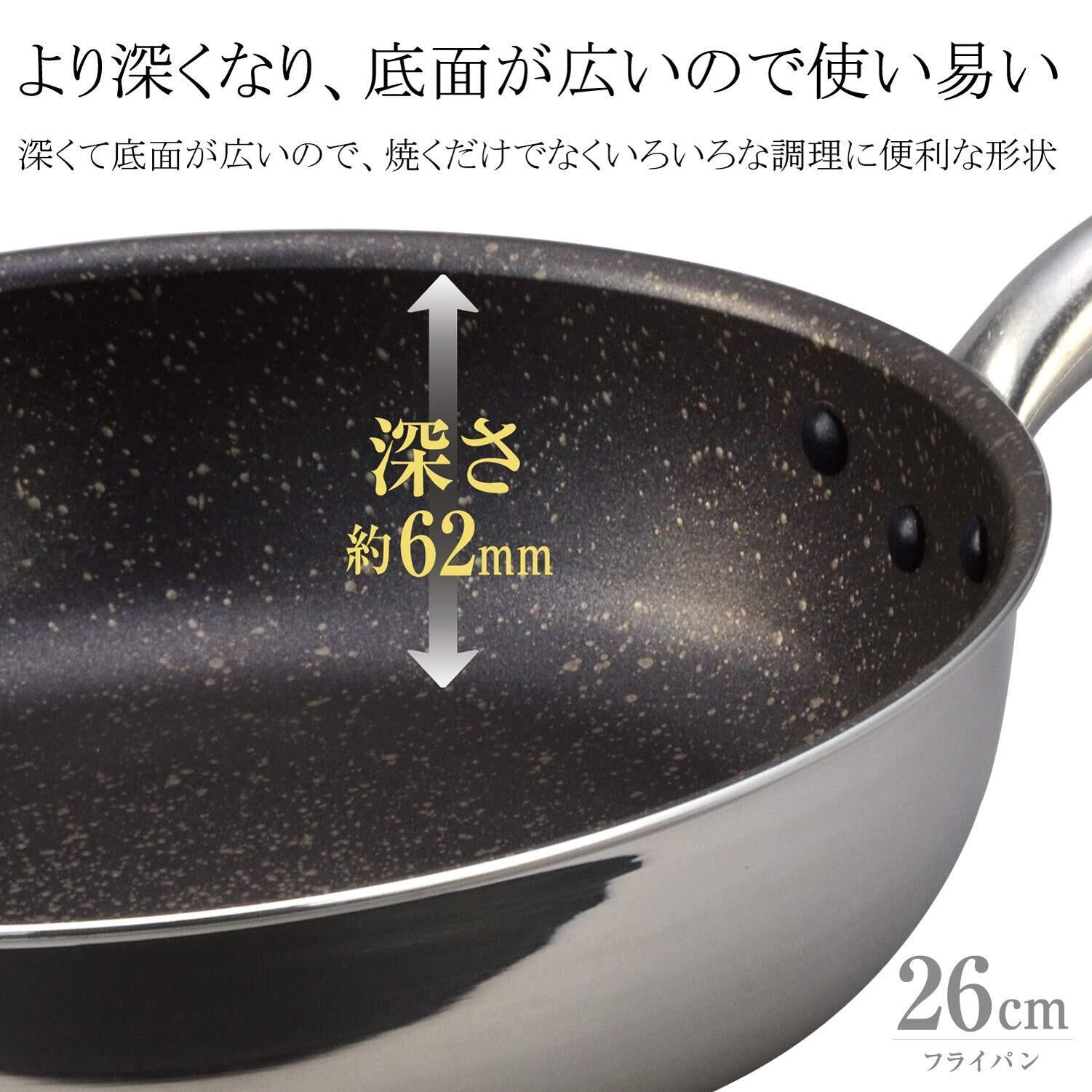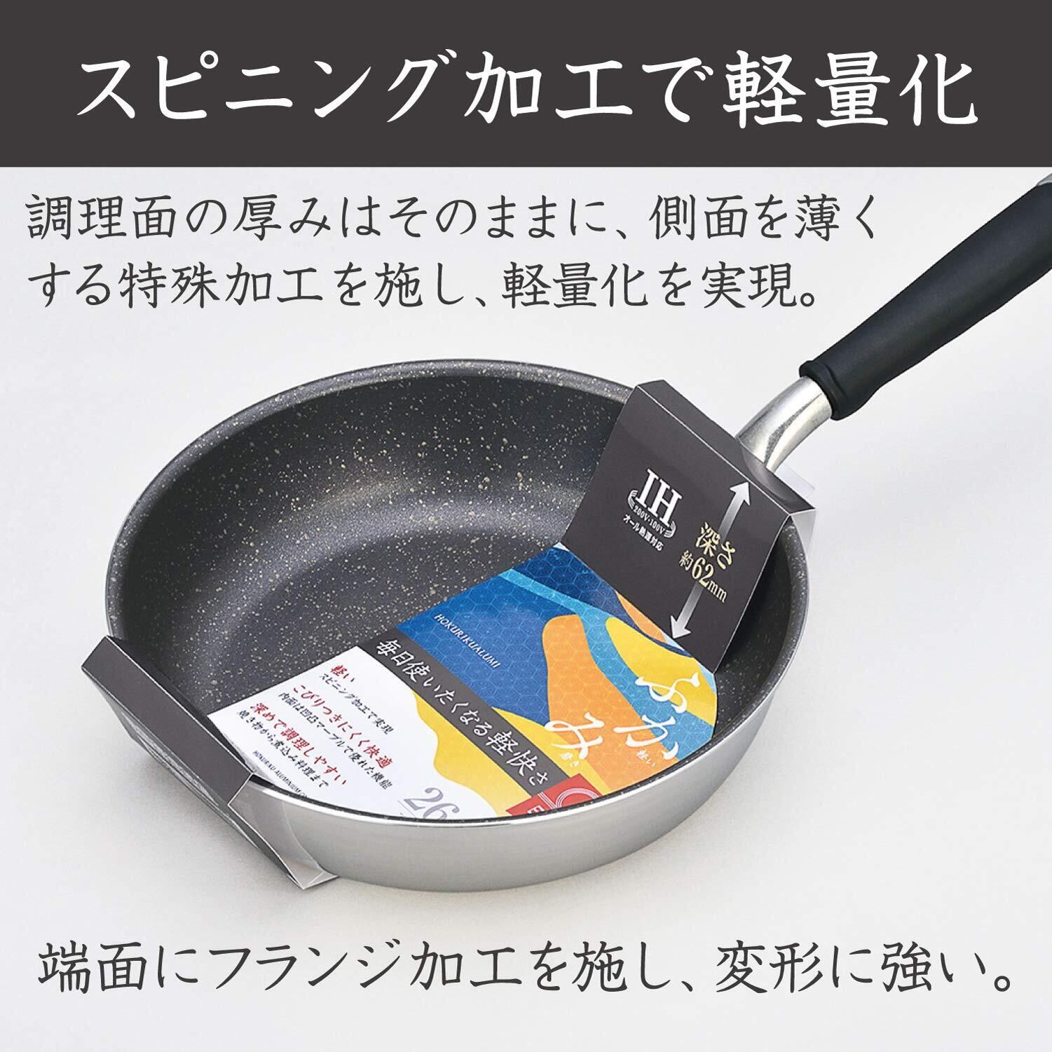 北陸アルミ フライパン 26cm 軽量 アルミ IH対応 日本製 深さ6.5cm 深い 深型 底面が広い 軽い いろいろな調理に便利な形状 スピニング加工 端面はフランジ加工 丈夫 frying pan made in japan 耐摩耗性試験 100万回クリア ダイキン Silkware シルクウェア 焦げ付きにくい ジャパンクオリティ PFOAフリー ふかみ A-2452