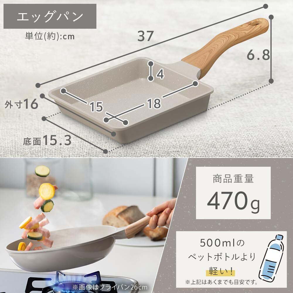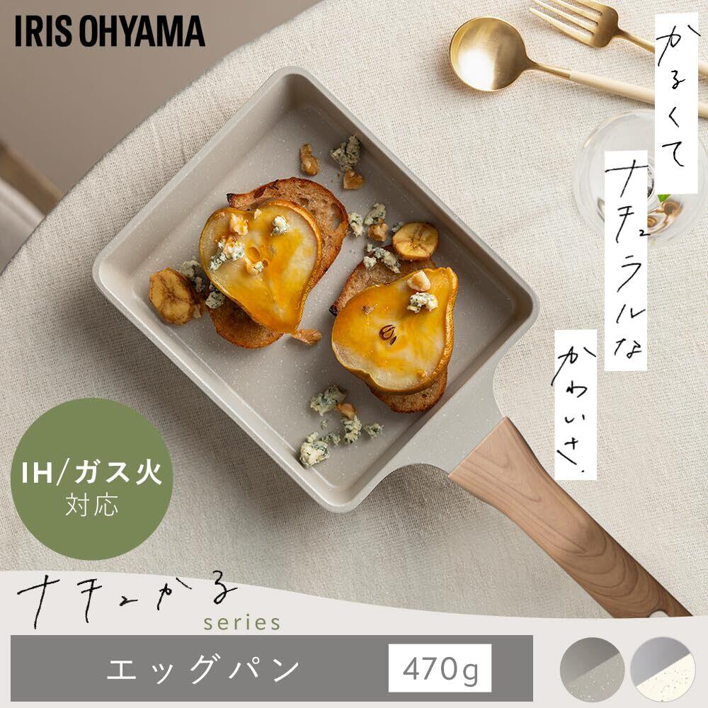 アイリスオーヤマ 玉子焼き 卵焼き フライパン IH・ガス火両用 ナチュかる エッグパン 軽量 食材がくっつきにくいフッ素コーティング 内側は上品なマーブル模様 SNS映え グレイッシュモカ NTL-EGMO